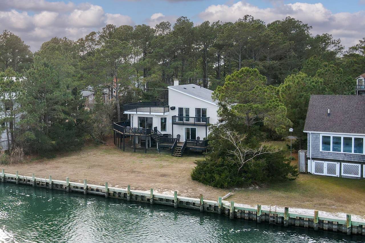 Step inside to find a welcoming living room leading into a cozy sitting area—ideal for relaxing evenings. The home's standout feature is a large covered porch where you can enjoy stunning waterfront views of the bay, making it the perfect spot to unwind or entertain guests. Beyond that, there's an inviting open deck that offers a serene setting for outdoor meals or starlit gatherings.