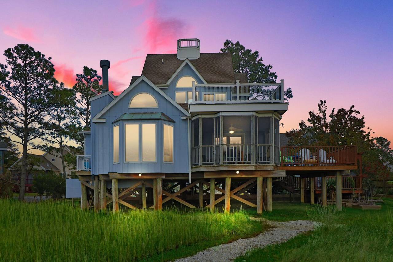 Luxury water view vacation rental home with dock access. This home boasts a full ensemble of amenities and the most beautiful views of Assateague Island. The oversized chef's kitchen offers ample room for family gatherings and preparing meals, and it compliments the spacious dining area that opens up to the large screened porch. Beautiful custom windows and large sliding doors complete the open and airy floor plan. The geothermal heating/ac system lends to your ultimate vacationing comfort! Close to Memorial Park (playground, basketball, tennis, trails, water access) and directly across the street from a family restaurant! For larger groups or family reunions, check out nearby Moon Rising or Wildflower!