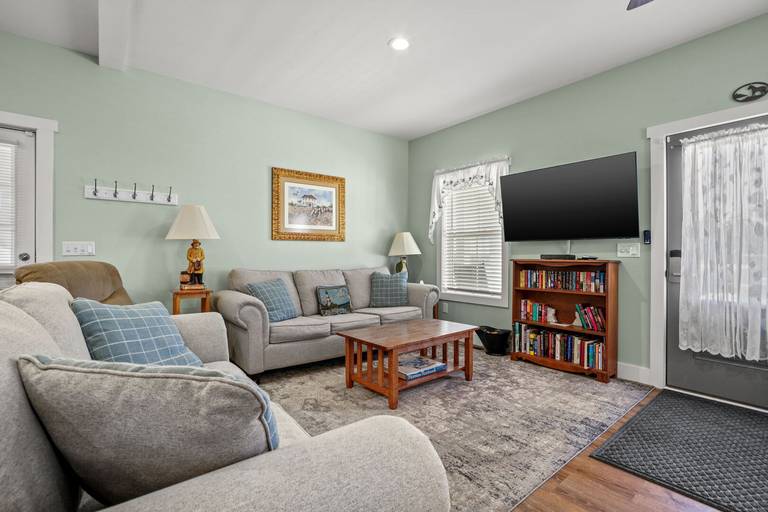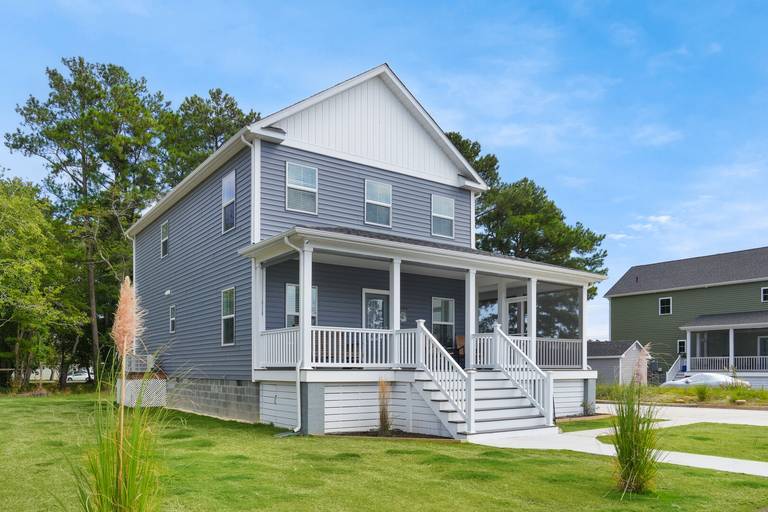All Done is located on the popular East Side Road, just minutes from downtown, Maddox Blvd (Beach Road), Memorial Park and the beach on Assateague Island. There are snippet water views of the Assateague Lighthouse and Channel. It is a brand-new home just built in Spring of 2024, and features an open first floor plan joining the kitchen, dining and living rooms into one, as well as a first floor bedroom with full bath. The second floor has 2 more bedrooms including individual full bathrooms, with a walk-in shower in the primary bedroom. There is a spacious laundry room also conveniently located on the second level. The outside of All Done includes a screened porch on the side of the home, and a spacious front porch with ample rockers to enjoy the sunsets over the tree line. There is also a charcoal grill, a large yard for games and parking for up to 4 cars.