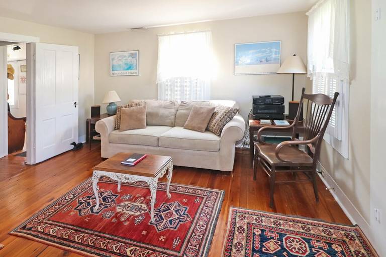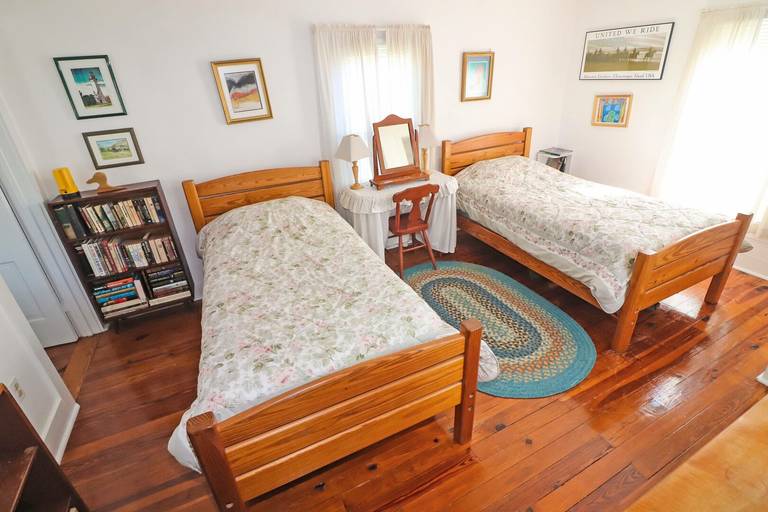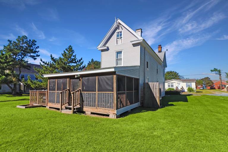Come for an old fashioned family vacation. This wonderfully maintained classic Chincoteague-style home features a large screened porch and beautiful, spacious yard for those warm summer evenings. A great enclosed outside shower comes in handy for rinsing the sand off after a long day at the beach. Downstairs there is a family room with a wood stove, living room/library with a TV and an eclectic selection of books, a formal dining room, full bath and kitchen. Upstairs there are three bedrooms and a full bathroom. Bring your kids and pets along, there is plenty of room to play!