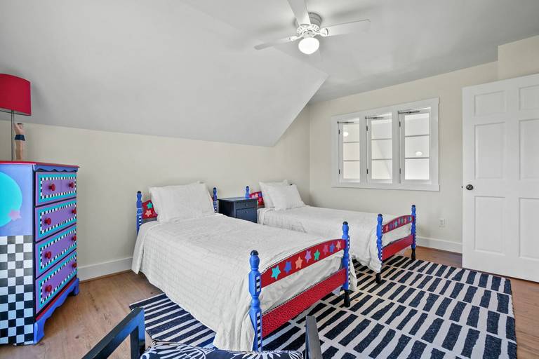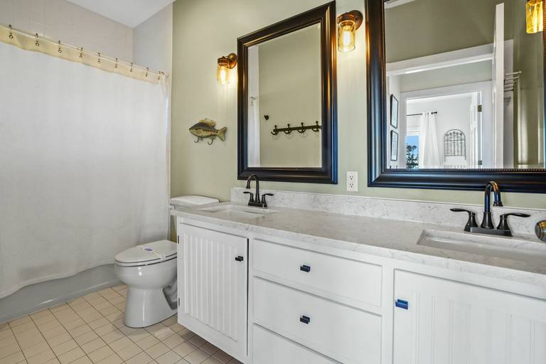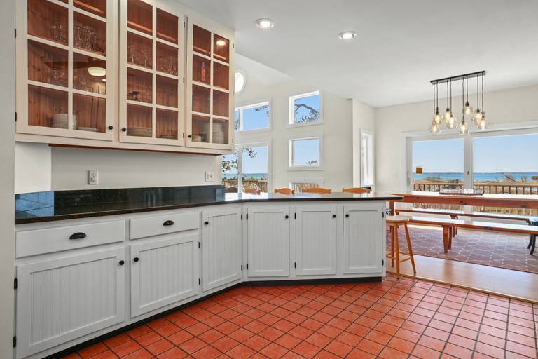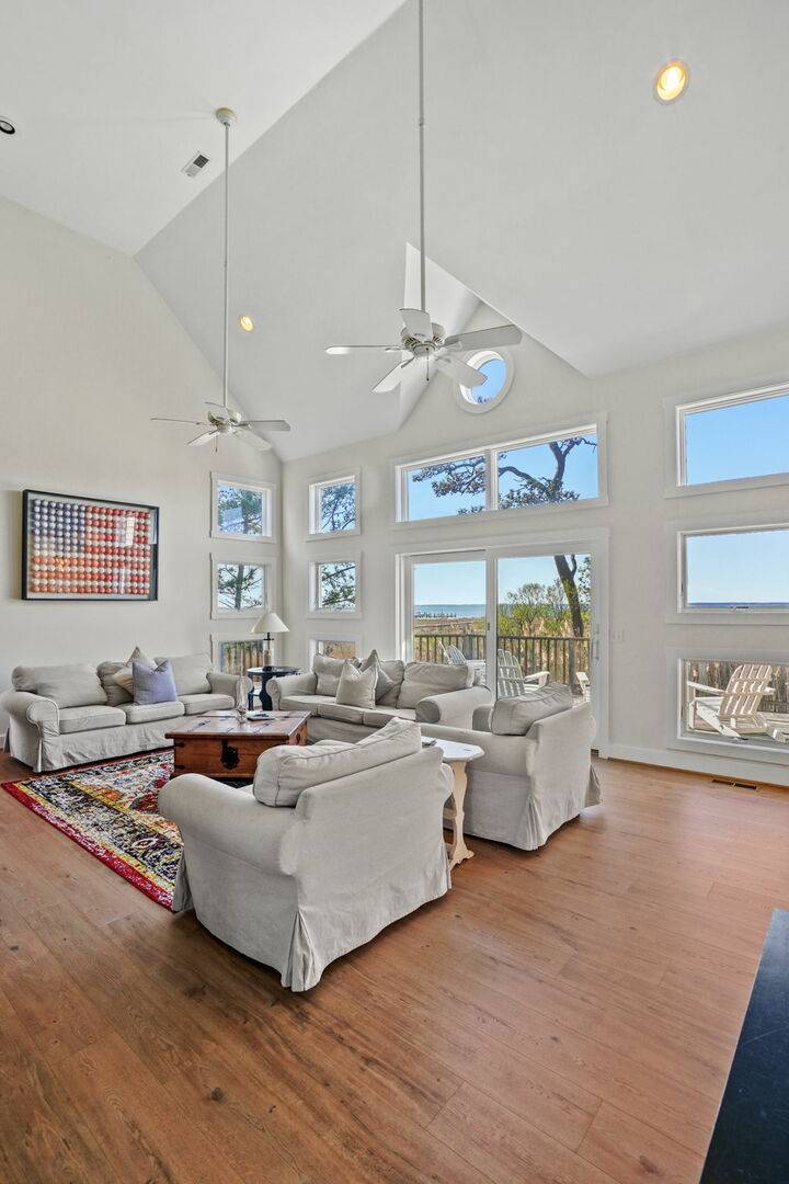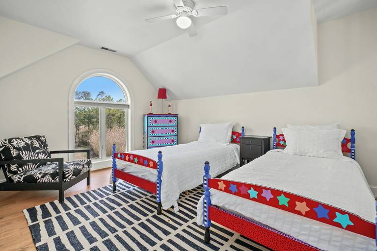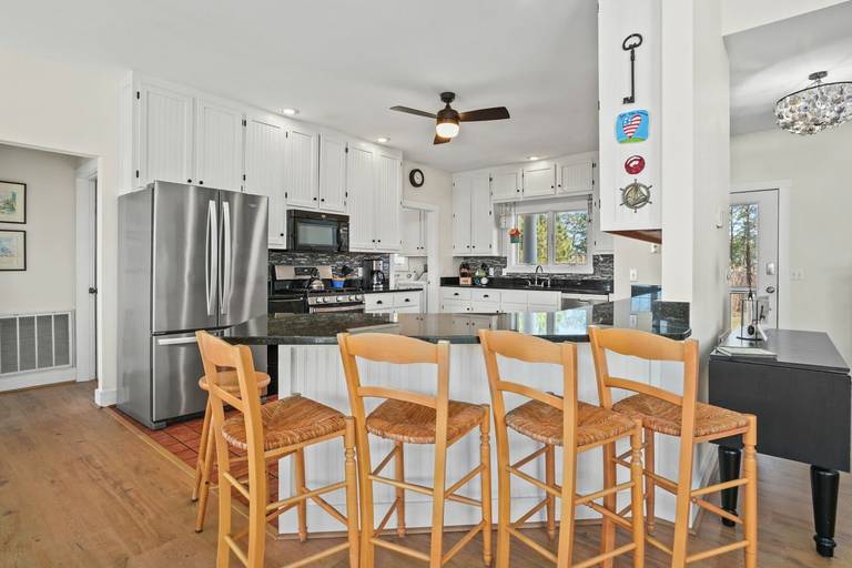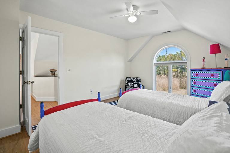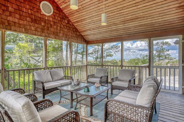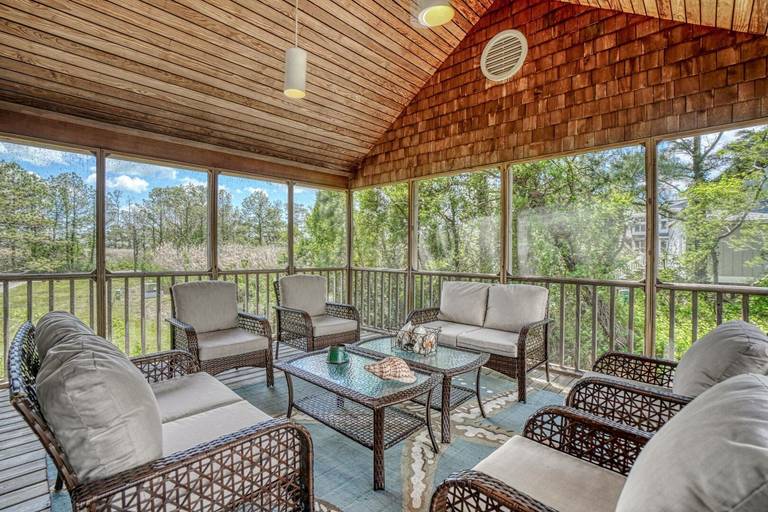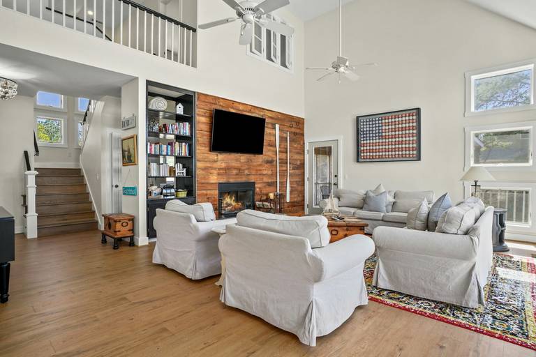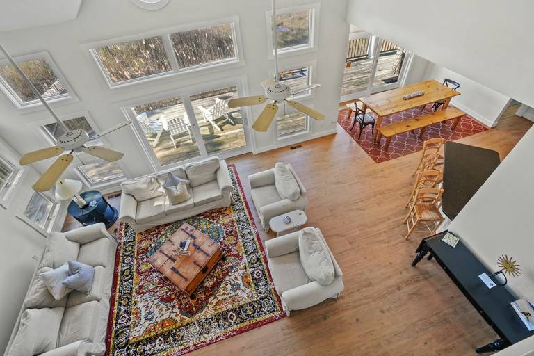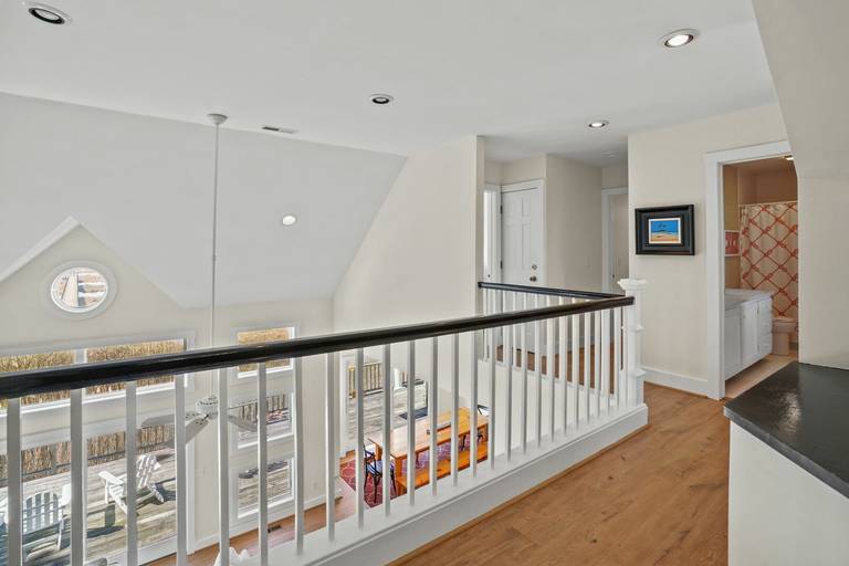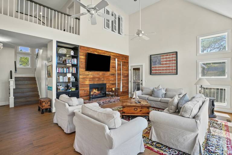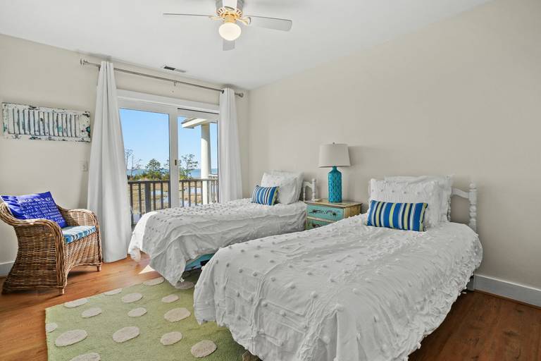 Luxury waterfront home in Salt Marsh Landing - an upscale residential community on the northern tip of Chincoteague Island. Spectacular sunsets! A long, private pier over the salt marsh leads you to a bay front dock area with shade. It's perfect for crabbing, fishing or canoe and kayak launching. Tastefully appointed and architecturally pleasing, Castlebar features a main level great room flanked by wall of beautiful custom windows and high cathedral ceilings. The views of Chincoteague Bay are priceless. The open kitchen area features ample counter space for meal prep, and the large harvest dining table is perfect for gathering the whole group for a meal. There are hardwood floors, and a two-sided fireplace that is shared with the adjoining cozy den. The first floor also features a full bath and large bedroom that looks out on the bay. The second floor hosts the primary bedroom suite, containing a private bath with separate shower and whirlpool tub. A sliding French door leads out to a balcony providing more views of the bay to enjoy. Two additional bedrooms and full bath complete this floor. Amenities also include a private, full sized outdoor shower, wireless internet service, additional under-counter ice maker & more. Castlebar is available year round!