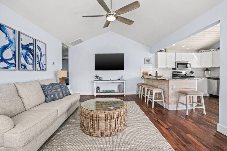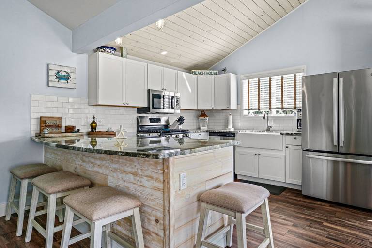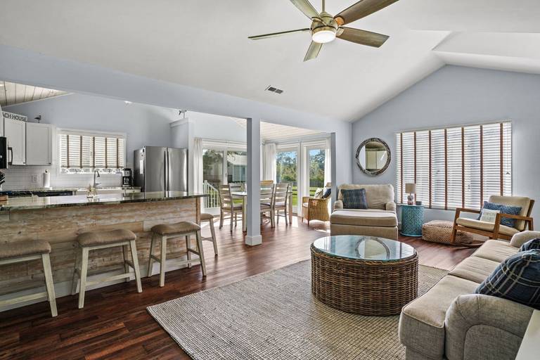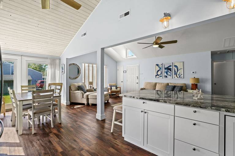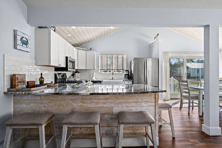 Nestled on a quiet cul-de-sac in the popular Oyster Bay II community is where you'll find our newest vacation home addition - ' Coastal Cottage'! Completely remodeled and adorned with simple, beachy-chic decor, you'll enjoy a most comfortable stay at this lovely home. The open floor plan features a main living room area, sitting area, dining room and large kitchen space with breakfast bar/center island. All of the bedrooms and both full bathrooms are on one level making it convenient for single-level living. The master bedroom with en suite bath has a queen bed, the second bedroom has a queen bed, and the third (large) bedroom has 2 queen beds side-by-side. Come for a stay at 'Coastal Cottage' - it may just become your next favorite beach home!