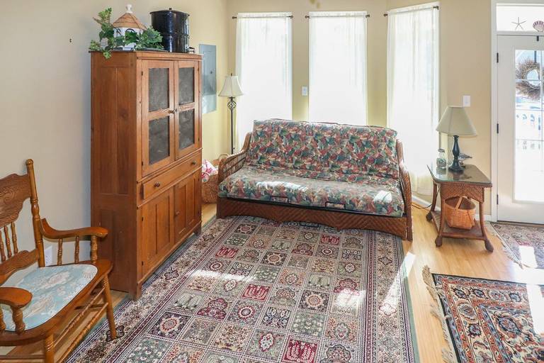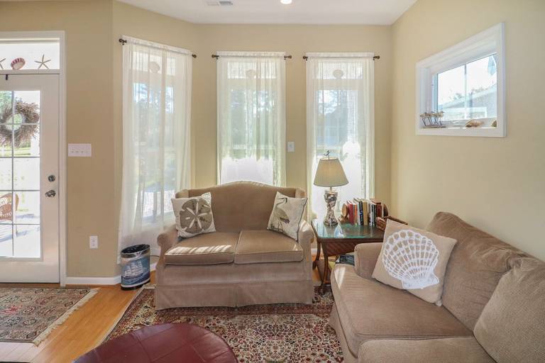 Nestled on a quiet cul-de-sac in a private community just off North Main Street (Oyster Bay II) is where you'll find the charming Cockleshell Cottage! This modern 3 bedroom, 3 bathroom home boasts a first-floor master bedroom suite (Queen), all amenities and comfortable furnishings. Upstairs features 2 more bedrooms (Double and Double/pull-out Twin trundle), and a full bathroom. Cockleshell Cottage is handicap accessible. Relax and enjoy the breeze on the open front porch or back screened porch. Call us today; this home books fast!