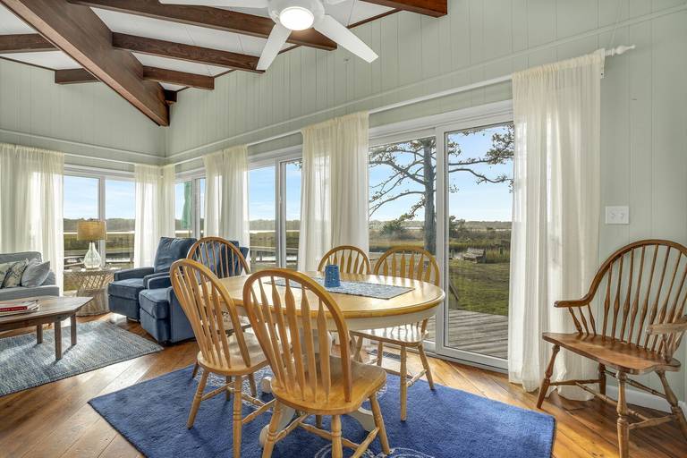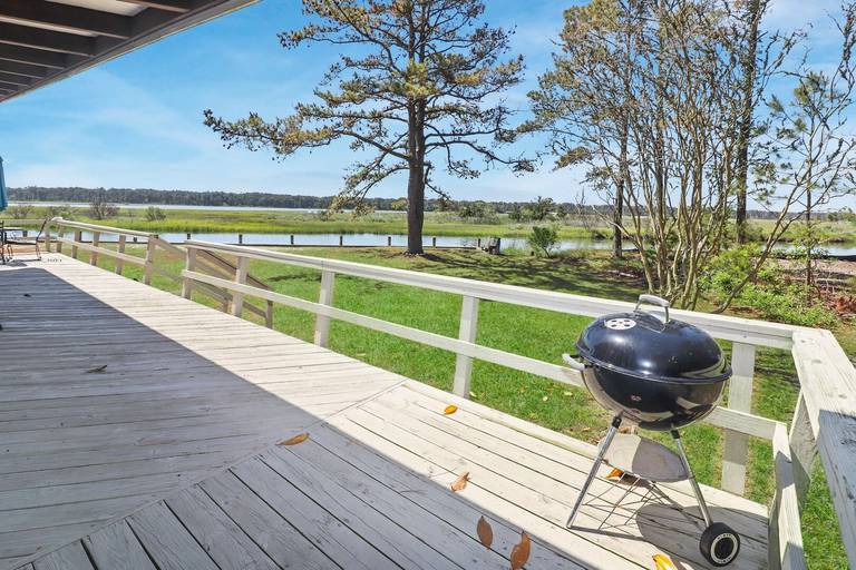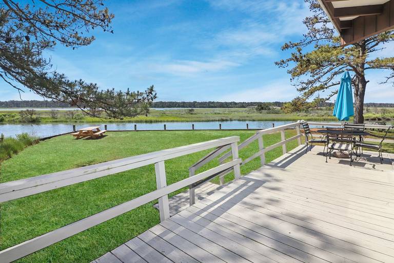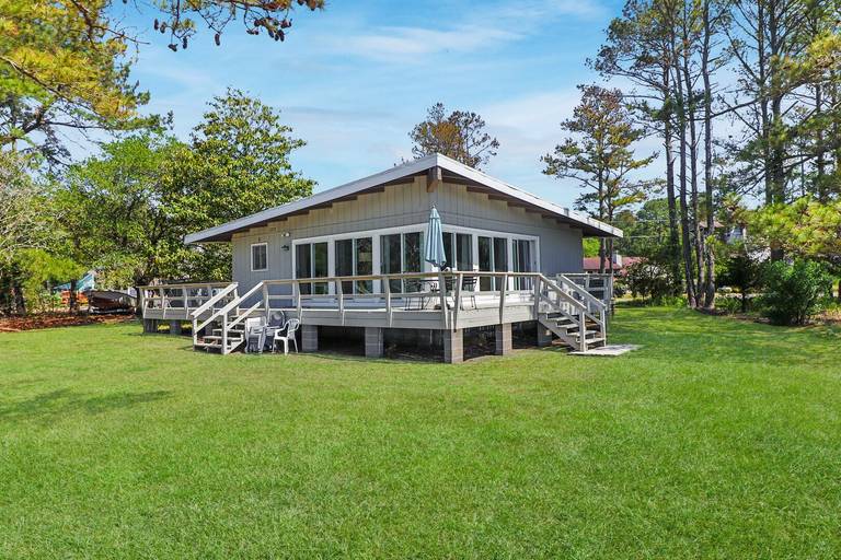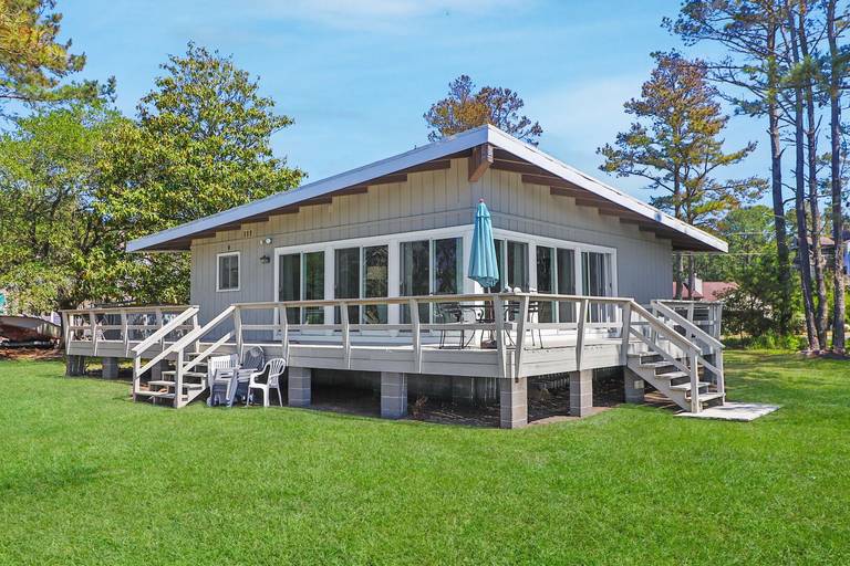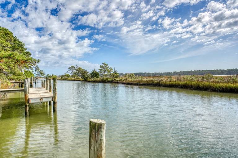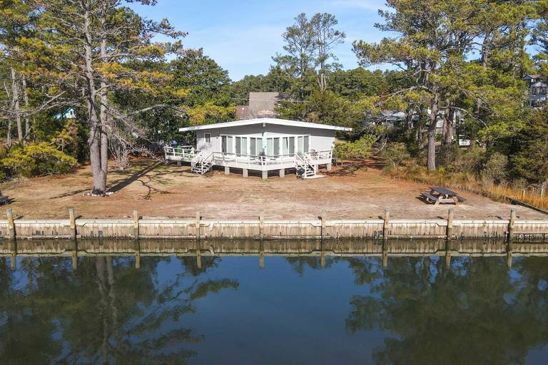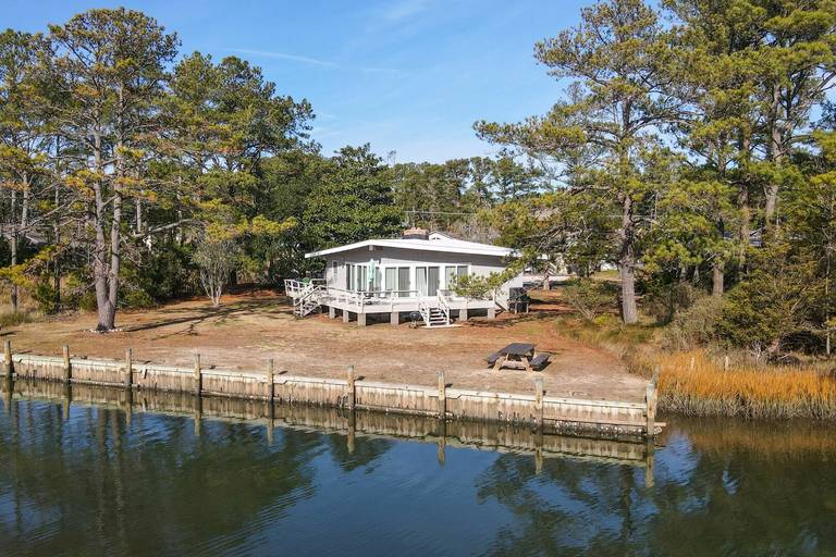The house is located on Pine Drive in Piney Island - the closest neighborhood to the beach - convenient for shopping and dining on Maddox Blvd. This wonderful waterfront beach bungalow features a wrap around deck with views of Assateague and the light house. You can bring your boat, jet skis or kayaks and keep them tied up out front. There is a spacious living room for entertaining and a nicely remodeled kitchen! Your rental also includes water access (a short walk from the home) to a tidal creek that comes up from Oyster Bay - it's a great place for the kids to crab or to launch a kayak or canoe.