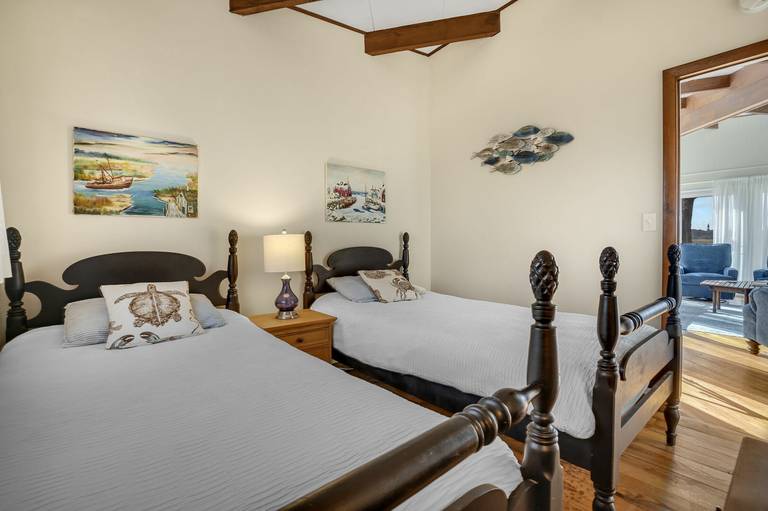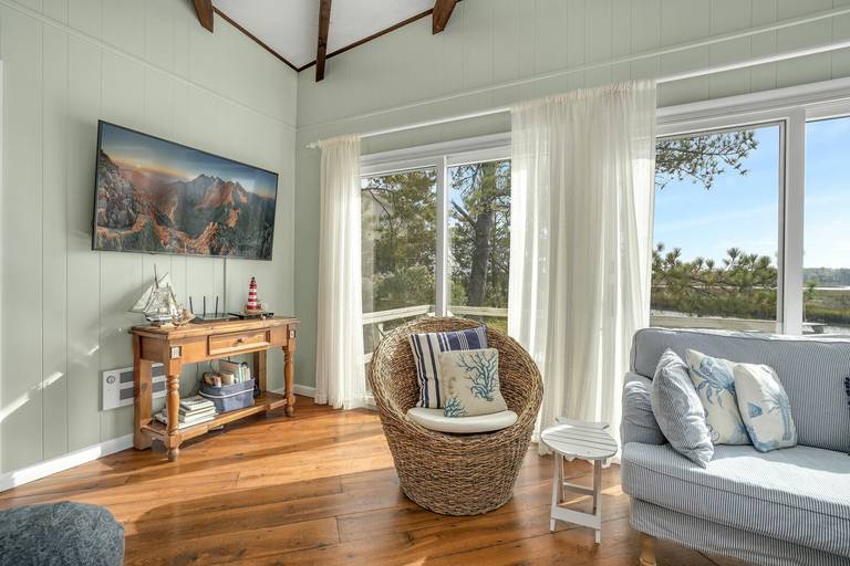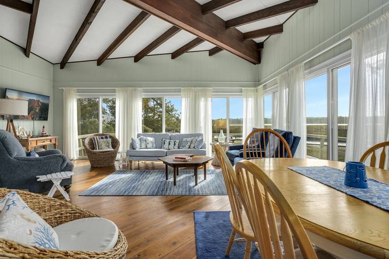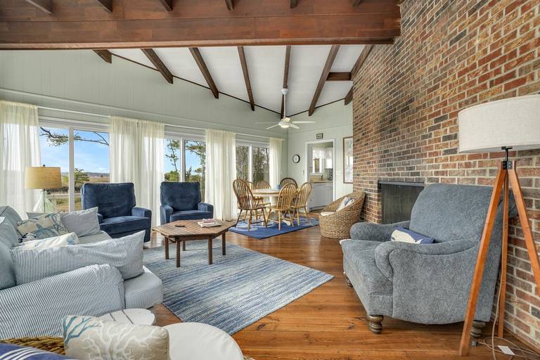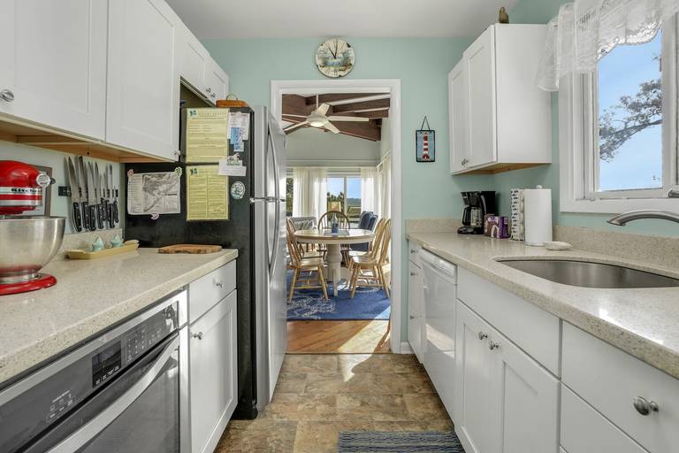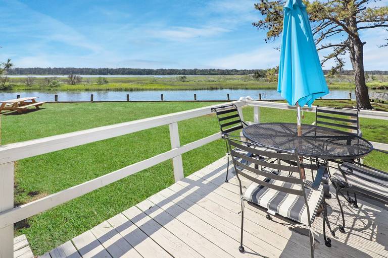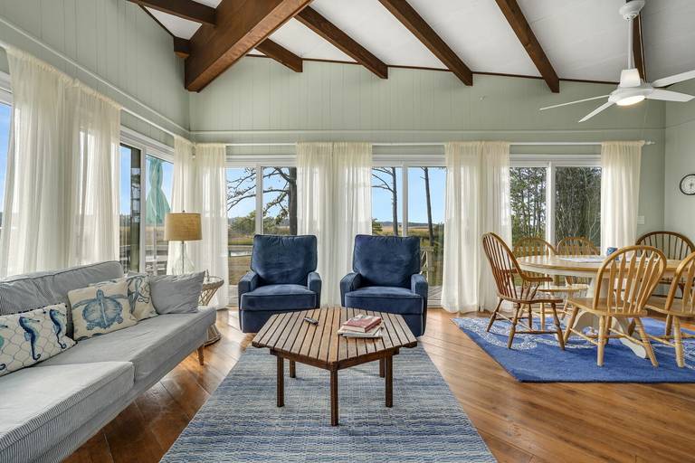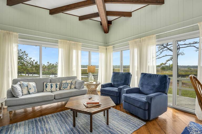 The house is located on Pine Drive in Piney Island - the closest neighborhood to the beach - convenient for shopping and dining on Maddox Blvd. This wonderful waterfront beach bungalow features a wrap around deck with views of Assateague and the light house. You can bring your boat, jet skis or kayaks and keep them tied up out front. There is a spacious living room for entertaining and a nicely remodeled kitchen! Your rental also includes water access (a short walk from the home) to a tidal creek that comes up from Oyster Bay - it's a great place for the kids to crab or to launch a kayak or canoe.