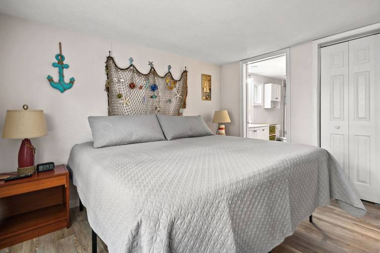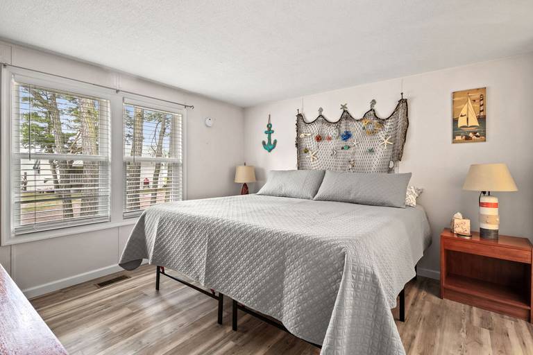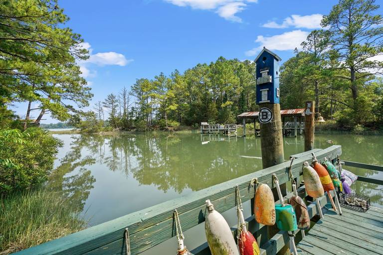 Welcome to 'Counting Corks' (formerly known as 'Smith Beach Pines'), the moment you step foot in this beautiful waterfront cottage you feel at home. The pet friendly cottage is 1,150 sq ft, featuring 3 bedrooms and 2 full baths. The primary bedroom has a king size bed and TV. On the other end of the home the second bedroom features a queen bed and a TV. The third bedroom features a twin over a full bunk bed. The cottage also has a bar room leading into the deck area, with plenty of seating to entertain. The dock leads to the creek and is just waiting for you to go crabbing, fishing, or kayaking or simply enjoy the beautiful sunrise while drinking a cup of coffee. The property is short distance to the community beach and to the community boat ramp. Also features an outdoor shower and a firepit area with plenty of seating. The cottage is located just a few short miles from the Historic Town of Cape Charles and about 25 minutes from Kiptopeke State Park.