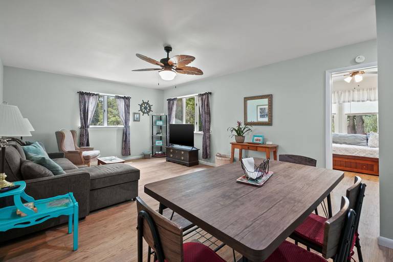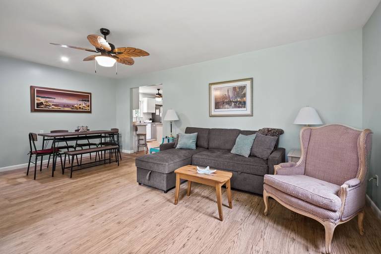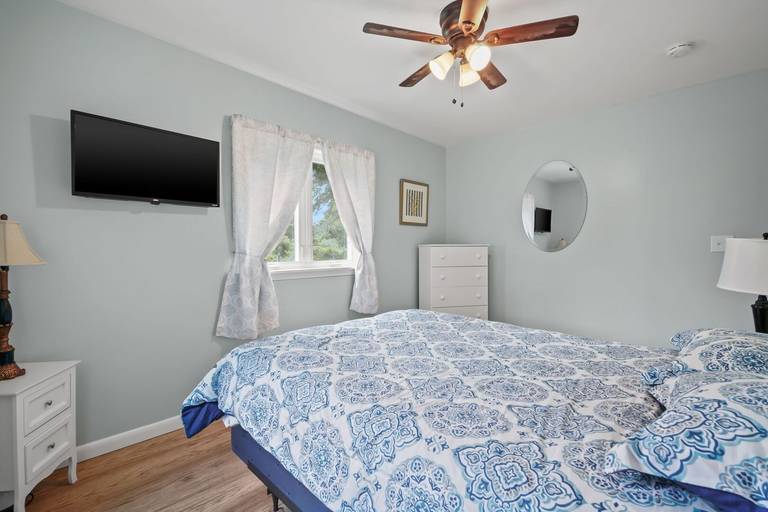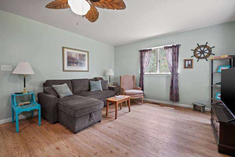 Enter a world of tranquility at Deep Hole Hideaway! Need a break from the daily grind? We've got you covered! Our chic and well-equipped living space will make you feel right at home. And when your tummy rumbles, our kitchen is your culinary sanctuary. Two snug bedrooms await you, furnished with a Queen bed, a Twin daybed, plus a sleeper sofa for your whole posse! The elegant and refreshing décor will overwhelm you with happiness as soon as you step through the front door!