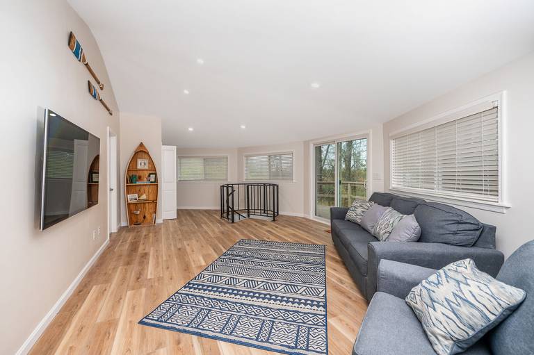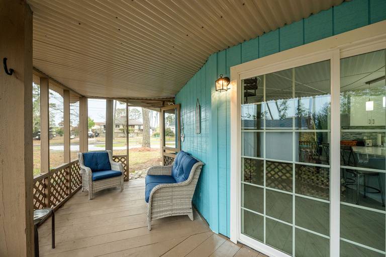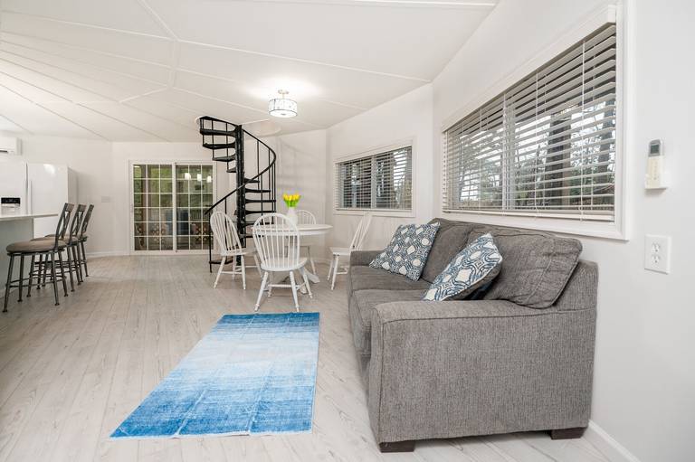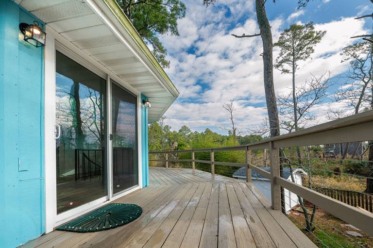 Hailey's Round House is a recently renovated, beautiful 3 bedroom home with 2 bathrooms. The luxury porcelain floors throughout will leave you feeling entranced from the moment you walk through the door. Spacious, thoughtful, aesthetically pleasing, and comfortable are just a few words to describe what you will experience at Hailey's Round House. This home offers first floor living, a huge screened porch, quartz countertops, ample deck space, seclusion as well convenience. On the first floor, you will find a full bath with walk in tiled shower, as well as a complete living room, and bedroom featuring a full sized bed. You can reach the second floor by a private exterior entrance, or from the winding spiral staircase located inside. Upstairs you will find a second living room as well as two more bedrooms and another full bathroom with a tub. One bedroom features a full sized bed and the third is perfect for the kids, offering a twin as well as a full. While there are many focal points of this fabulous home, we are certain most of your time will be spent on the expansive deck, enjoying the sounds of nature and the deer who frequently visit the yard or downstairs in the screened porch. Hailey's Round House is located in one of the Island's most desired locations of Piney Island! It is close to the beach and ready to host your vacation stay!