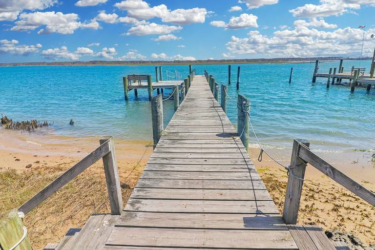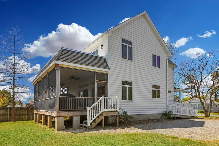 Luxury water view vacation rental home with dock access. This home boasts a full ensemble of amenities and the most beautiful views of Assateague Island. The oversized chef's kitchen offers ample room for family gatherings and preparing meals, and it compliments the spacious dining area that opens up to the large screened porch. Beautiful custom windows and large sliding doors complete the open and airy floor plan. The geothermal heating/ac system lends to your ultimate vacationing comfort! Close to Memorial Park (playground, basketball, tennis, trails, water access) and directly across the street from a family restaurant! For larger groups or family reunions, check out nearby Moon Rising or Wildflower!