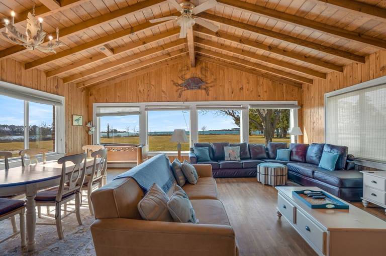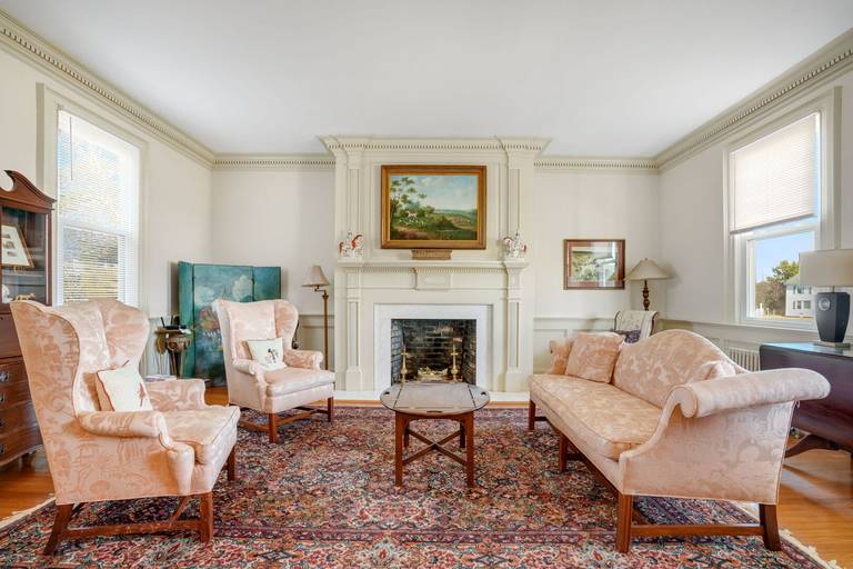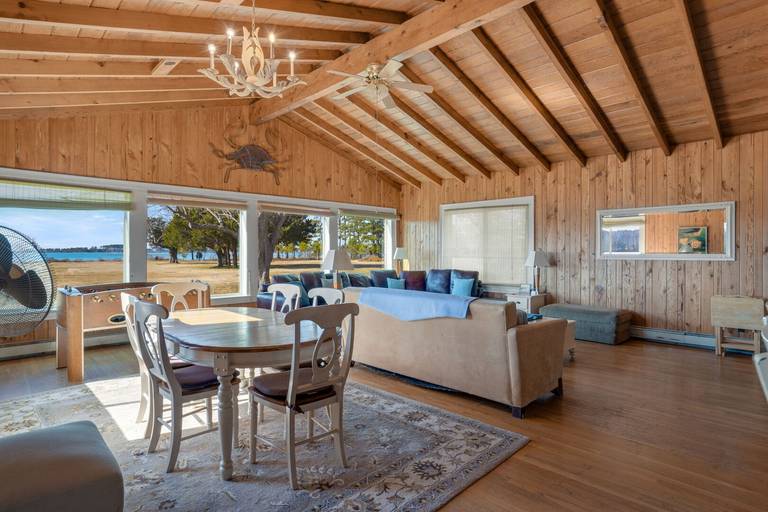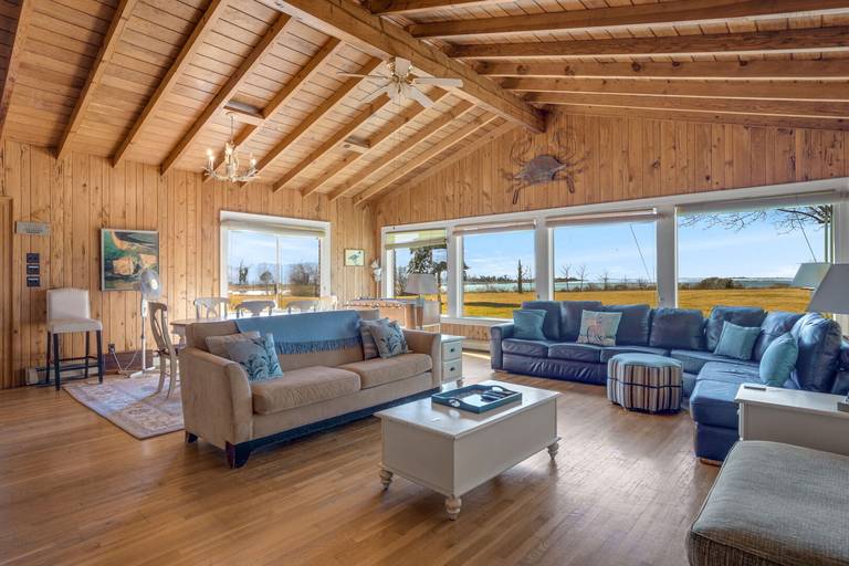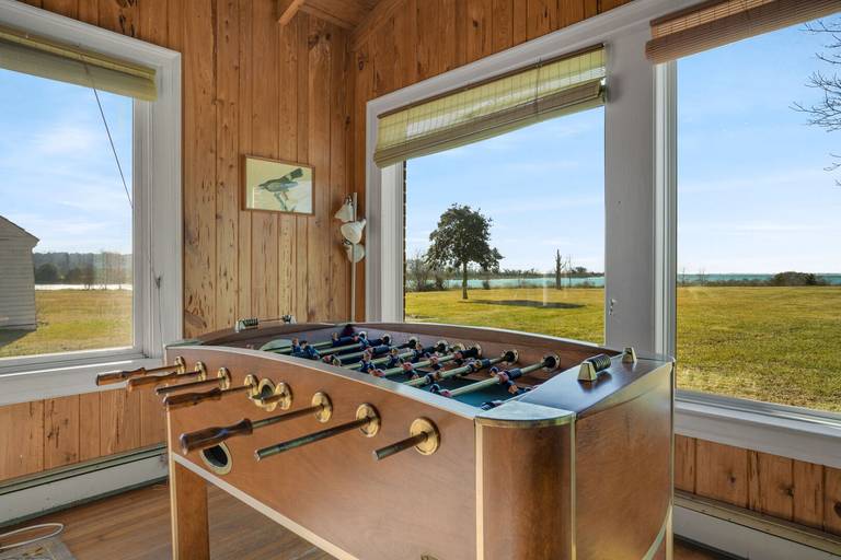The residence showcases impeccable architectural details throughout its thoughtfully designed layout. The ground floor presents a series of elegant entertaining spaces, including a stately formal living room and dining room, perfectly suited for sophisticated gatherings. The heart of the home features a thoroughly modernized kitchen that seamlessly bridges centuries of history with contemporary convenience. Perhaps the most captivating space is the family room, where expansive picture windows frame mesmerizing views of the marshlands and bay, creating an ever-changing natural canvas. As an added bonus, this room features a foosball table and card table - perfect for those family game nights.