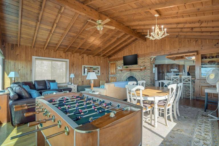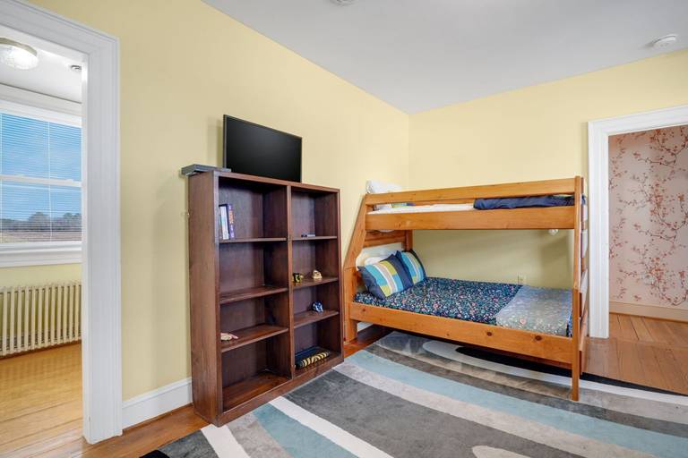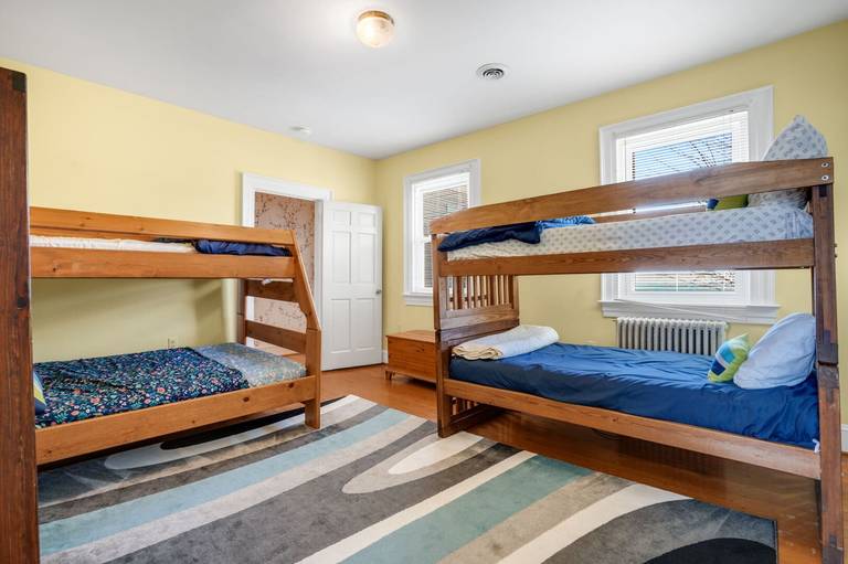 Ascend to the second floor to discover four meticulously appointed sleeping quarters. The primary bedroom suite presents a luxurious king-size arrangement, while a second bedroom offers a refined queen-size setting. The third bedroom features two sets of bunk beds, perfect for younger guests or the young at heart. A versatile sleeping/sitting room, complete with two twin-size day beds, rounds out the accommodation options, all serviced by three well-appointed bathrooms.
