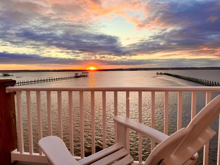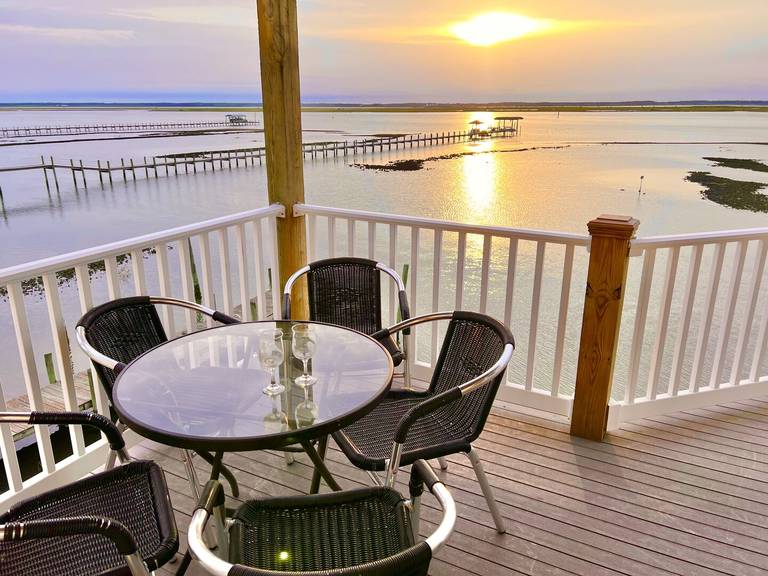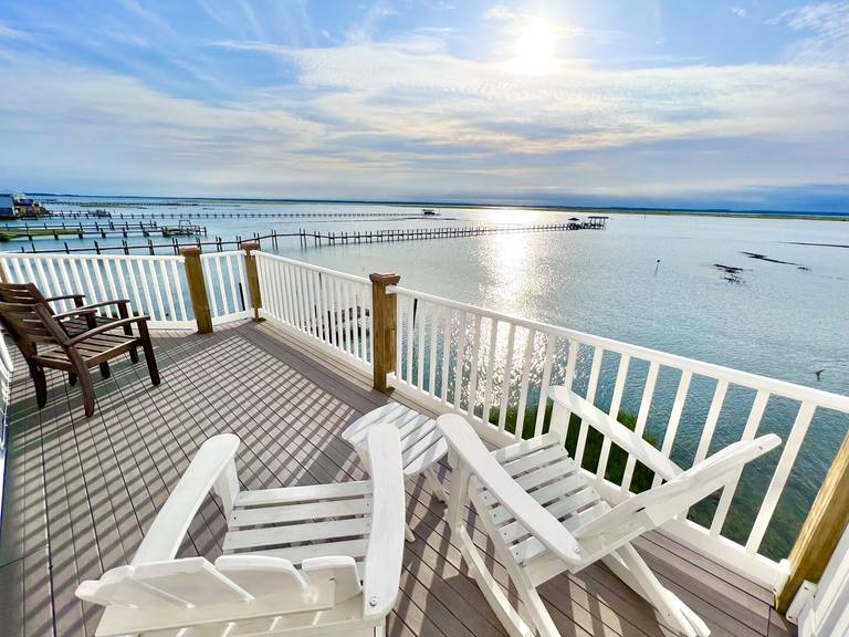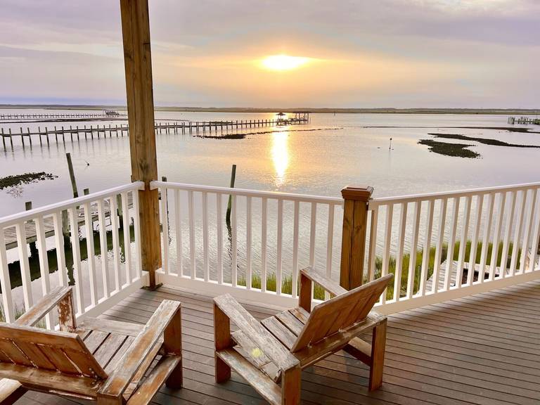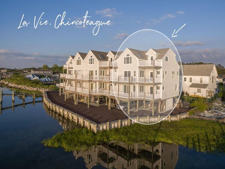 Views! Views! Views! Enjoy the expansive panorama from all three levels of this prime waterfront location on Chincoteague Bay. With 180 degrees of natural beauty graced by blissful sunsets, “La Vie” invites you to live the life at its most relaxed.