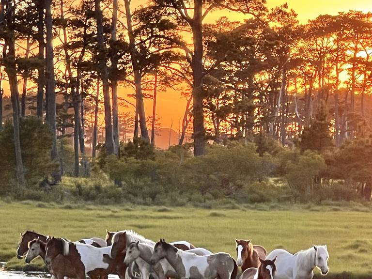 On Pony Swim week, the world famous Chincoteague Ponies parade right in front of La Vie (July).