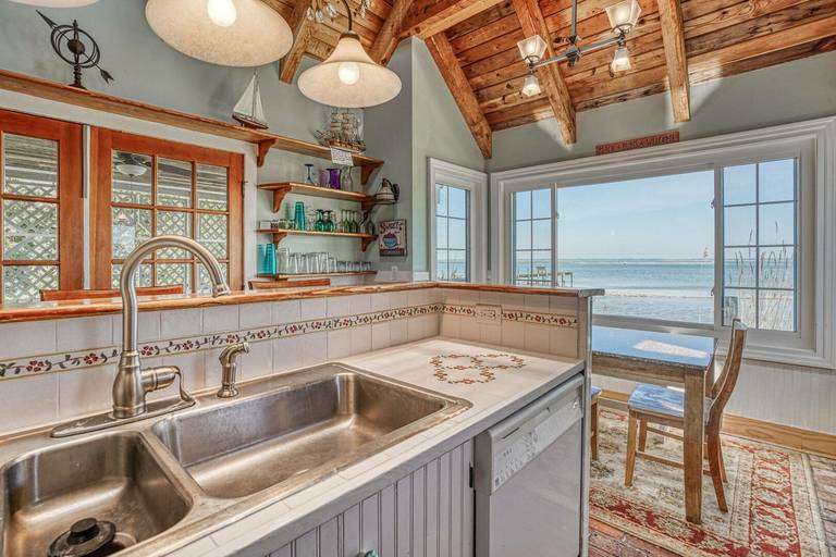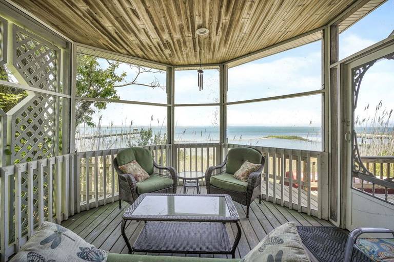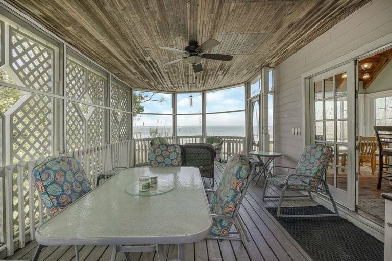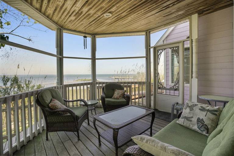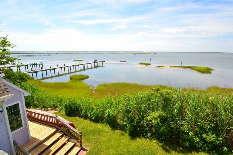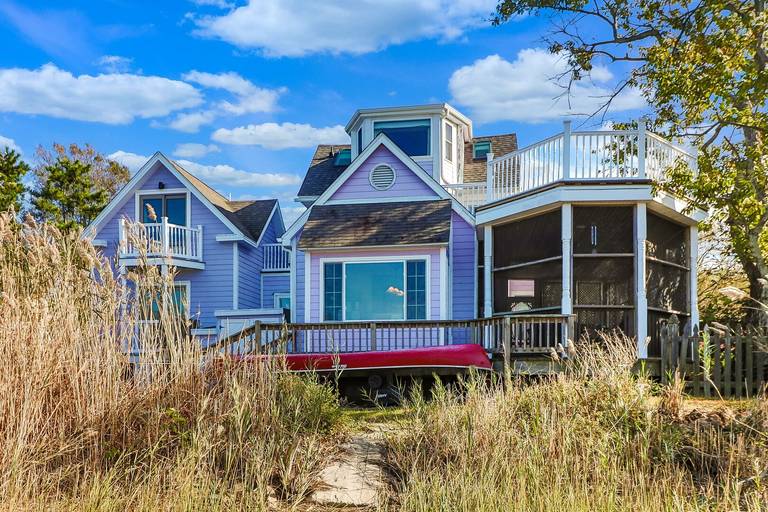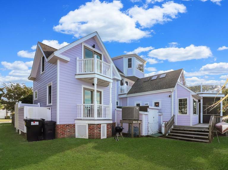 Tucked away off North Main on the waterfront, Lavinder House is a charming Victorian-style home steeped in tradition. From the original woodwork to the brick kitchen floor, you'll enjoy the original integrity this island home features. Once the home of actress Linda Lavin, 'Lavin'der House tells its own story. Some of the fine features include central air conditioning, water views and balconies from almost every room, eat-in kitchen w/ all appliances and great screened porch. Open front porch and, best of all, the unobstructed panoramic views of the sunset and Chincoteague Bay. Enjoy a once in a lifetime vacation in this fairy tale home! *Lavinder House also features 2 kayaks, paddles, and life-jackets available for guest use!* - Linens and towels are not included with your reservation. Please inquire about our new attractive linen packages!