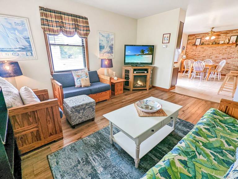 Love staying in Morning Memories! I’m a repeat renter! The pool is a definite plus and love having the dock! Nice quiet area of the island. Only concern with this unit is the couch..could use a new cushion. Other than that, love my time at Morning Memories!