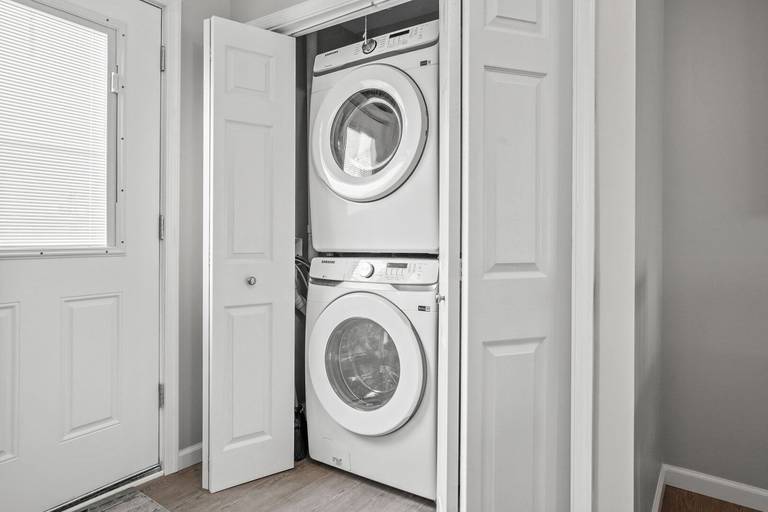 As you step inside, you'll be welcomed by a fresh, contemporary interior that has been newly updated to provide both style and function. The living area is equipped with a Smart Tv and Roku as well as a work desk, perfect for entertainment and relaxation. The kitchen features all the necessary appliances and ample space, making it ideal for cooking and dining.