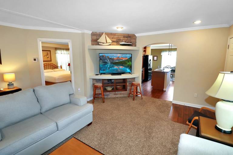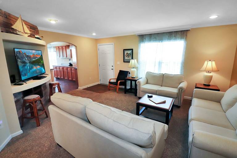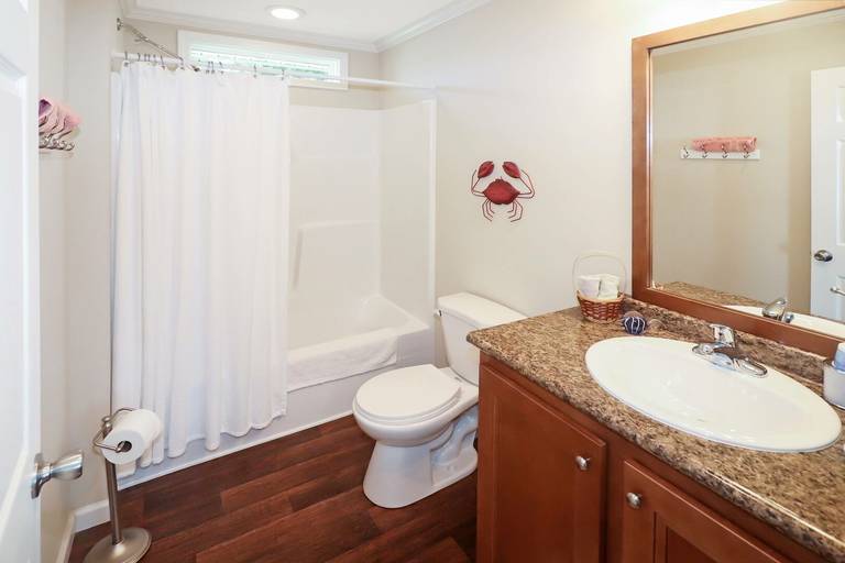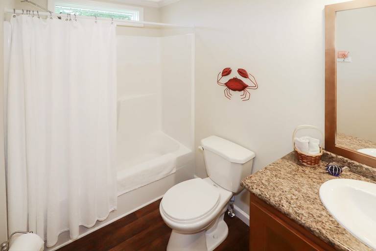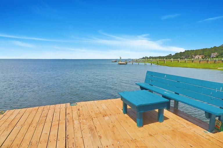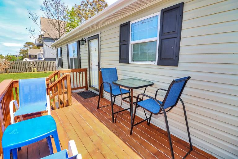 Tucked away on a quiet lane off of North Main is where you will find My Island Escape. This brand-new home is absolutely immaculate! Luxury finishings, tastefully appointed furniture and decor make for a flawless backdrop to your next vacation. The living room at My Island Escape features ample comfortable seating and a flat screen television, and flows into the fully equipped, gourmet, eat-in kitchen that features a large island and plenty of space for cooking, dining, and enjoying meals with the family. The master bedroom features a Queen size bed with an en suite highlighted by a large soaking tub, double vanity, and separate glass stand up shower. The two other bedrooms in the home are close by a full bathroom located off the hallway. Another bonus in this home is the spacious laundry room complete with a full-size washer and dryer, iron and an ironing board, and connects to a convenient half bath. Outside, you will find deck space with outdoor furniture, and a picnic table with umbrella for outdoor dining. If you are looking for a clean, relaxing, upscale rental with great attention to detail ? look no further and escape to My Island Escape!