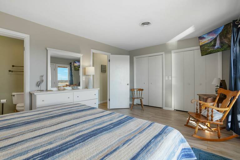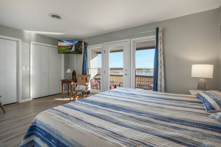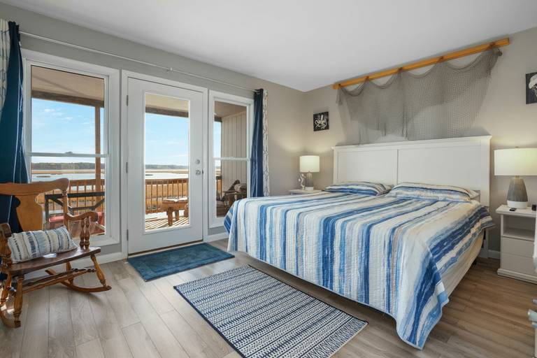 Upon entering this home, you will find a half bath, first floor bedroom with a queen-sized bed, a well-stocked kitchen, living room, and large waterfront deck with plenty of seating to relax, enjoy the wildlife, and watch the ponies grazing on Assateague Island. On the 2nd floor you will find two more bedrooms as well as the laundry area. The main suite features a king-sized bed with a full bathroom and waterfront deck to enjoy the peaceful sounds of nature and beautiful sunrise views. You will also find a 3rd bedroom that easily accommodates 5 more guests. This room features a twin over twin bunk, a twin over full bunk, and a full bathroom with walk in shower. This home also includes a nice assortment of beach chairs and a small attached garage where you can store your bicycles and kayaks. If you are looking for a home with all the amenities and want to enjoy the beauty of Chincoteague & Assateague Island, this is it!