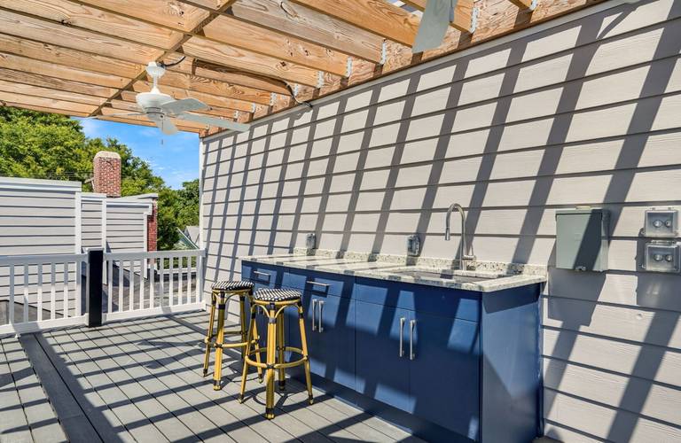 Take advantage of the rooftop terrace which offers relaxation while overlooking downtown and the Bay after a long day at the beach. Complete with a wet bar area under a pergola, this is sure to become one of your favorite hangout spots.