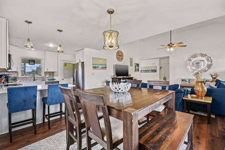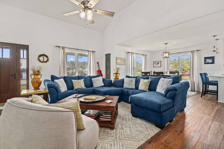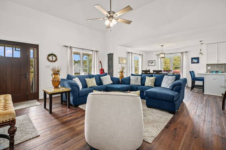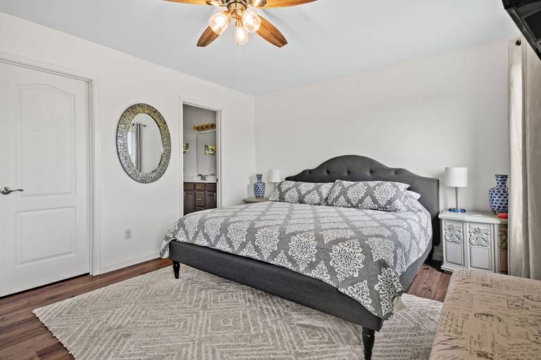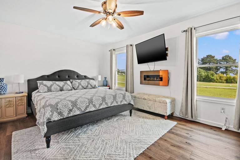 The home includes four smart TVs, (one in each bedroom) central heat and a/c, and plenty of board games to keep you occupied during your stay. Bedrooms are equipped with nice mattresses to ensure a good night's rest, along with cozy blankets and thoughtful décor. The owner's suite features a king sized bed, electric fireplace, on suite bath with a double vanity, large soaking tub as well as a walk in shower. You will find two more bedrooms just down the hall, one with a queen sized bed and another with a double bed. There is also another full bathroom with a tub/shower combo.