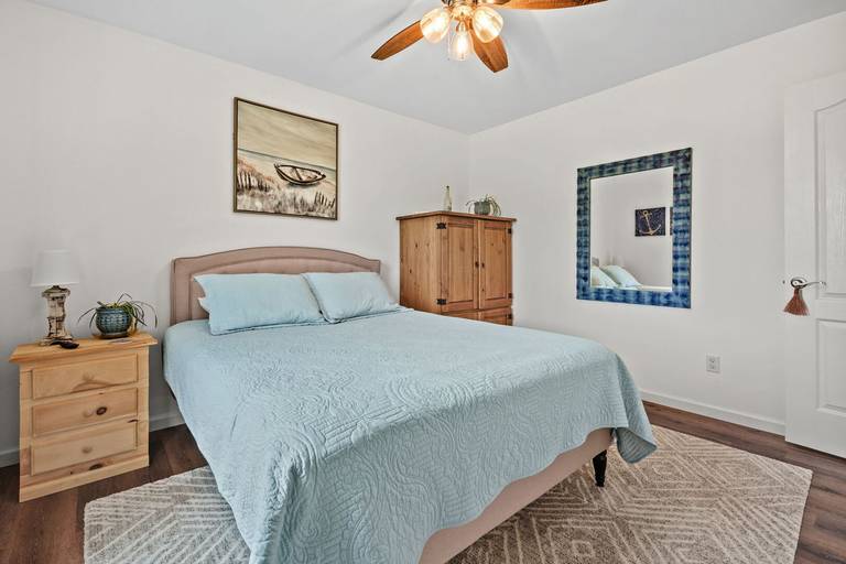 The front porch is perfect for sipping your morning coffee, or enjoying an evening beverage of choice. The screened in porch has comfy seating for 6 and a firepit for your enjoyment just off of the steps. Come spend a weekend or an entire week at Salty Sea Lyons, you won't be disappointed!