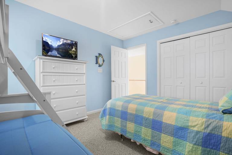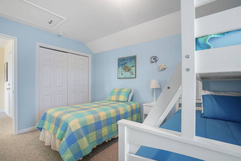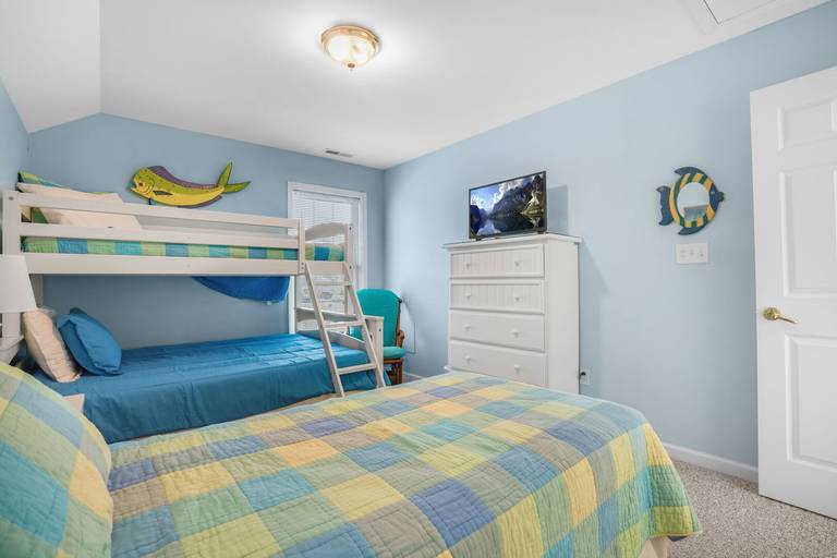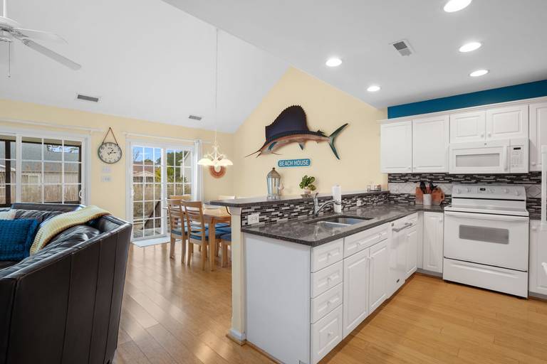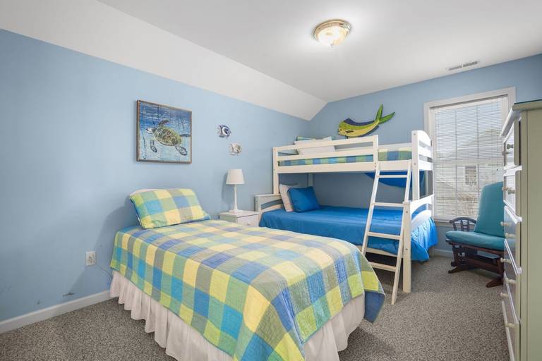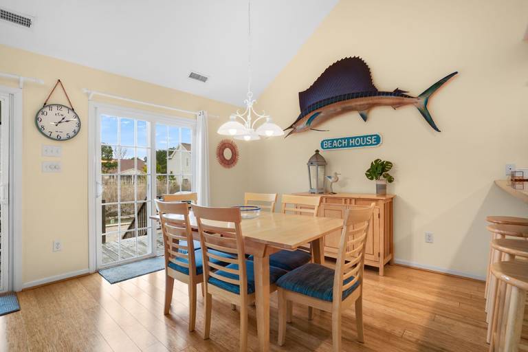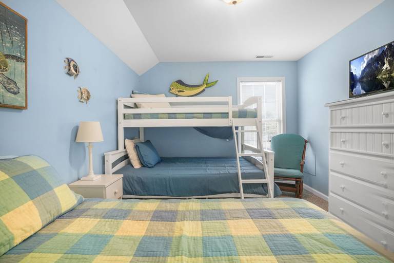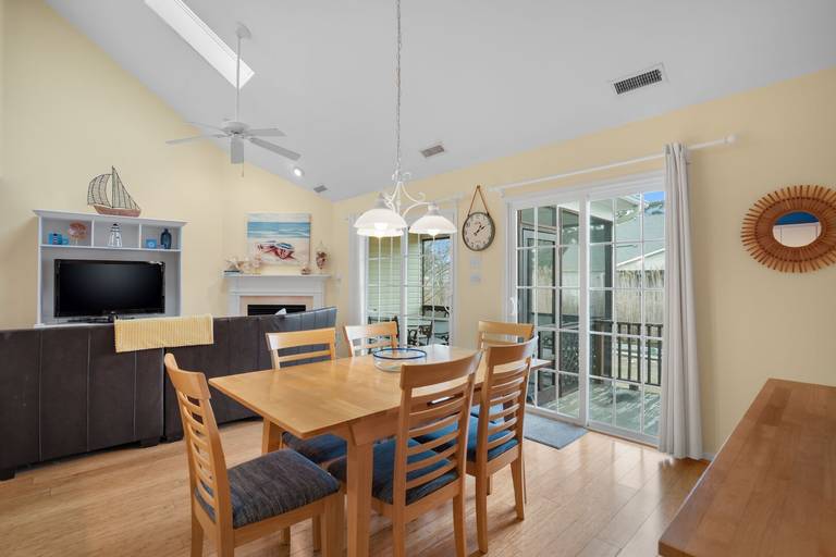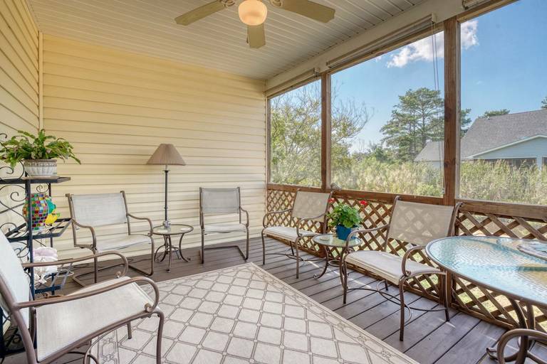 Aptly named, "Sea la Vie" means "Sea Life" or Life at the Beach. This beautifully upgraded three bed, two and a half bath duplex home is nestled in a small, quiet community. Bright, open floor plan allows plenty of sunshine and space to socialize. Relax by the pool after a long day at the beach. Enjoy a bug-free oasis on the screened porch, or grill out on the open deck. First floor bedroom is situated as a private suite with personal full bathroom. Two additional bedrooms upstairs share a second full bathroom. Picnic area out back, community pool just steps out front, you won't run out of things to do! Hosting a group requiring even more space? Rent Sea La Vie's sister, 'Seas The Day', just next door! **NEW FOR 2025: Kid's bunk room features a single Twin bed + a Bunk bed with a Twin over Full size bed!**