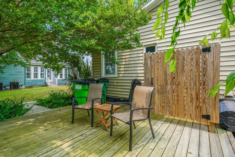 This was our 12th year vacationing with our family on CI. We have also used Chincoteague Resort Reality all 12 yrs. This was our first year staying in a house for the entire week. We were a little concerned with there being only one full bathroom. the outside shower was used a fair amount so we made due, but running water two places at the same time did affect the water pressure in full bath shower. I didn't realize there was not going to be a DW, although the listed amenities did not specify one. The kitchen was a bit small (table has 6 chairs but 2 are behind table and not usable as there is not enough space to pull table out and use). Table in enclosed porch was used. Kitchen was well stocked with pots, pans, dishes, and utensils. Sofa and one winged chair in living room are in need of being replaced. Springs or frame in sofa are broken and wing of one of the chairs is broken. Beautiful rugs in LR and 1st flr bedroom. Bedrooms were spacious. House had a nice yard and deck, although trees and shrubs need to be cut back a bit. Enclosed front porch was nice but needs updated, especially the screen door.Location was great - close to downtown and the bay for kayaking. Despite some of the shortcomings of the house, it provided a very homey and comfortable space for our Chincoteague family vacation!