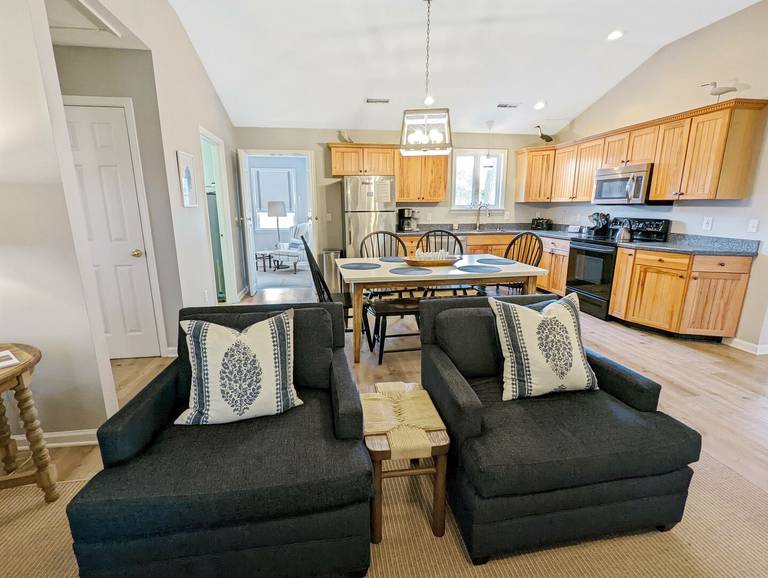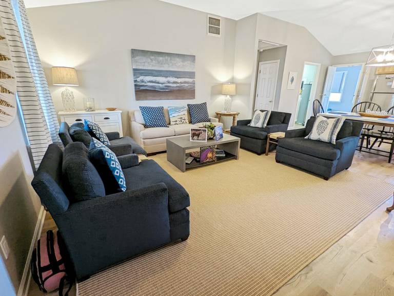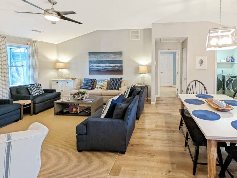 Aptly named, "Serenity at Oyster Bay" is just what you'll find at this delightful vacation home. Located in the highly-demanded community of Oyster Bay I, you'll enjoy the peaceful, quiet area nestled amongst the tall pines and marsh grasses. The main living area features a fantastic open floor plan; perfect for gathering the family and entertaining. The back of the house features a bright sunroom that looks out over a natural preserve - cozy up with a cup of coffee and a nice book! This home also features 3 bedrooms, 2 full bathrooms (completely remodeled) and has undergone a lot of fresh new upgrades! There's a little sitting deck out back, a screened porch, covered picnic/game area (with cornhole boards), newly added fire-pit, fish cleaning station, and so much more! And, as if that's not enough, there are water views and you're very close to the Oyster Bay Community water access! Don't delay - Serenity at Oyster Bay is sure to book quickly!