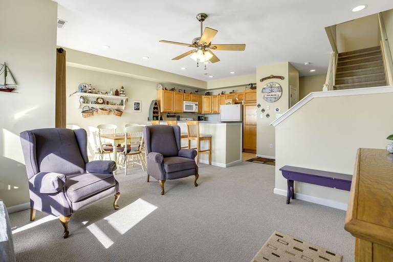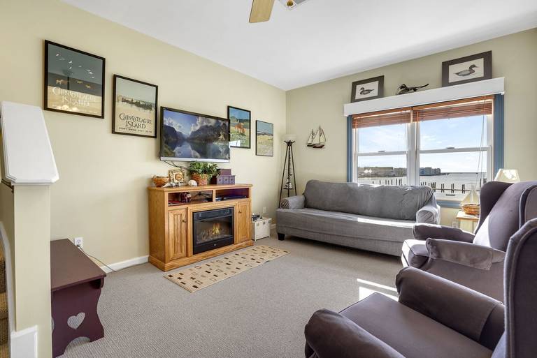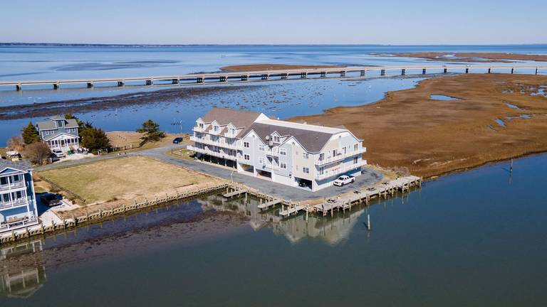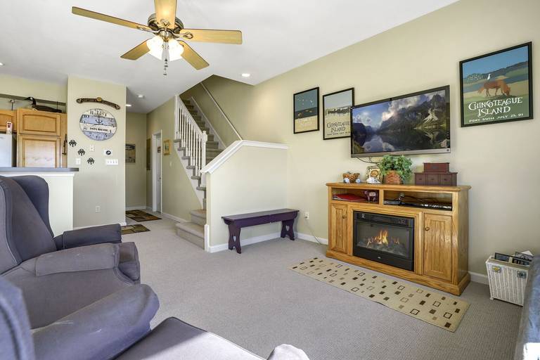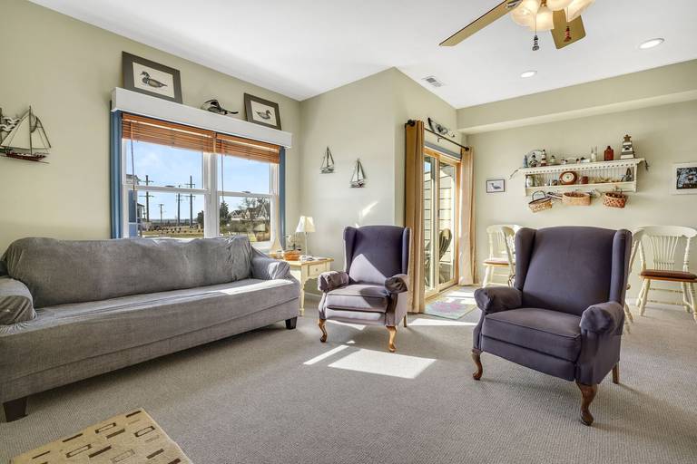 Nestled on the tip of Marsh Island, this fabulous 2 bedroom townhome features spectacular views of the Chincoteague Bay. Watch the fishing boats go by and witness the million dollar sunsets everyone talks about - all from the comfort of your own vacation home! The open floor plan downstairs is very inviting, and features the kitchen (with a breakfast bar), dining area with walk-out balcony, living room with flat-screen TV, and a half bathroom. Upstairs you'll find two nicely appointed bedrooms, one with a queen bed and the other with a twin trundle bed. There's also a full bathroom with tub/shower upstairs. If you're looking for a vacation home with all the modern amenities, unobstructed views, and the comforts of home, look no further. You've found it all at 'Sundance at Marsh Island'!