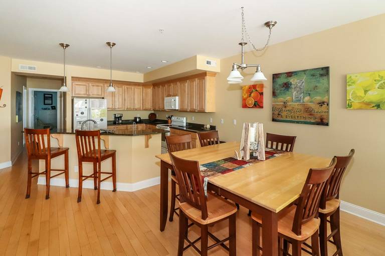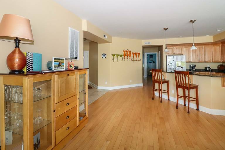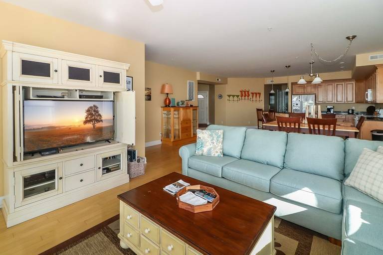 A beautiful ground-floor villa with walk out to marina. Luxurious master bedroom with private bath includes both a roomy tiled shower and whirlpool bath. Villa 116 will sleep 8 (beds for 6 plus a queen size air mattress), and includes a full laundry, all appliances, a gourmet kitchen, and more. There's also a pool and fitness room for your enjoyment! Tastefully furnished, you can relax, enjoy and entertain your family and friends in style. | NOTE: This unit does not have a boat slip, however, use of the marina is included.