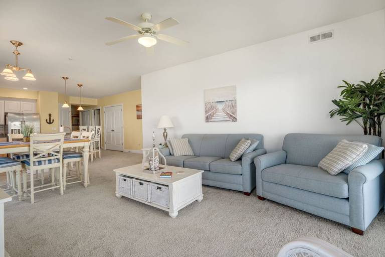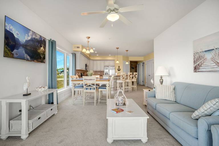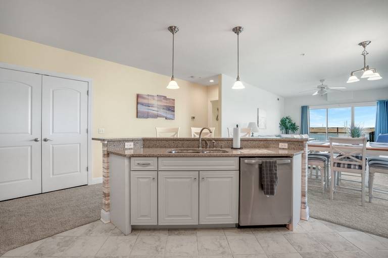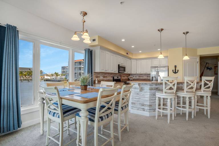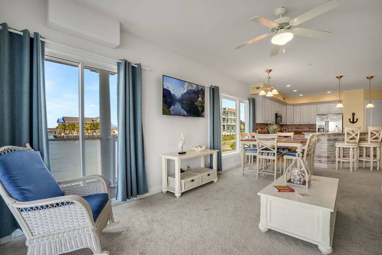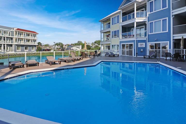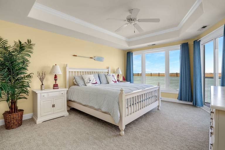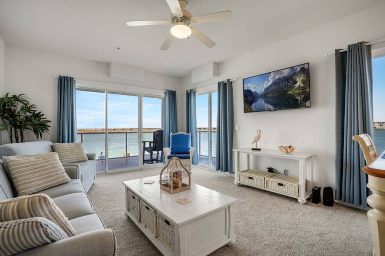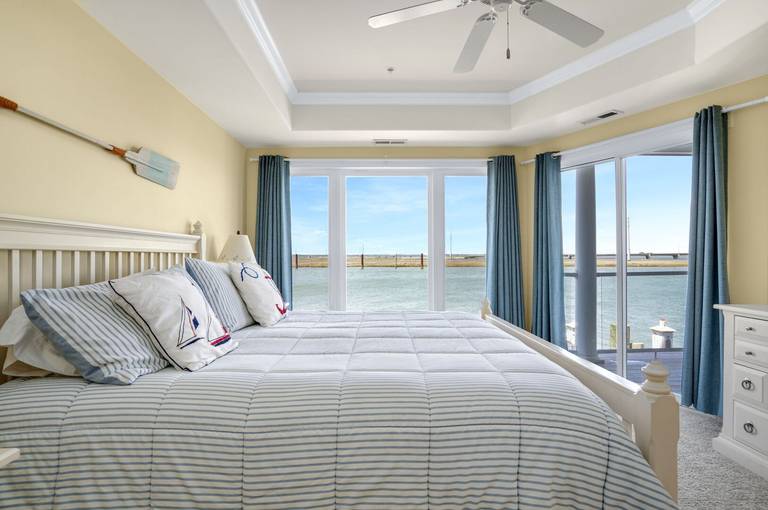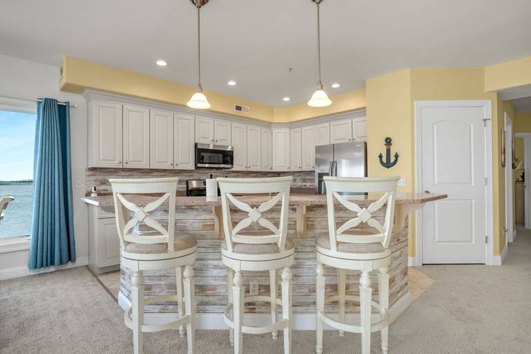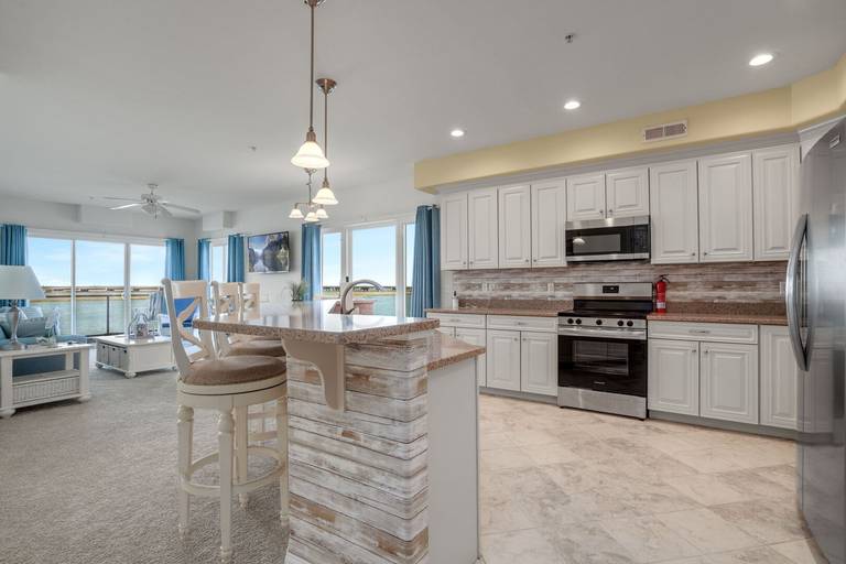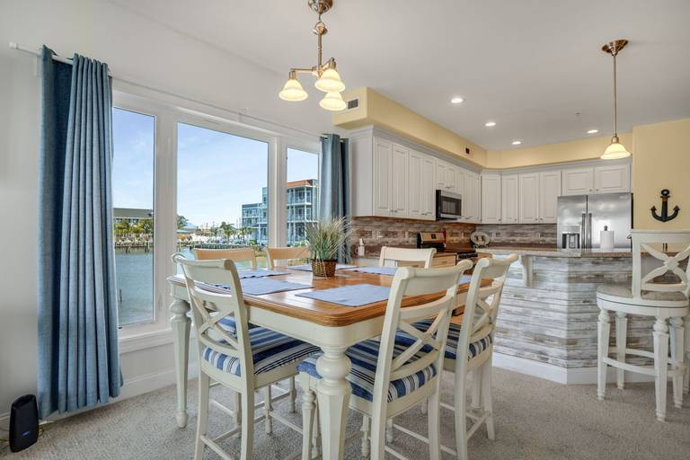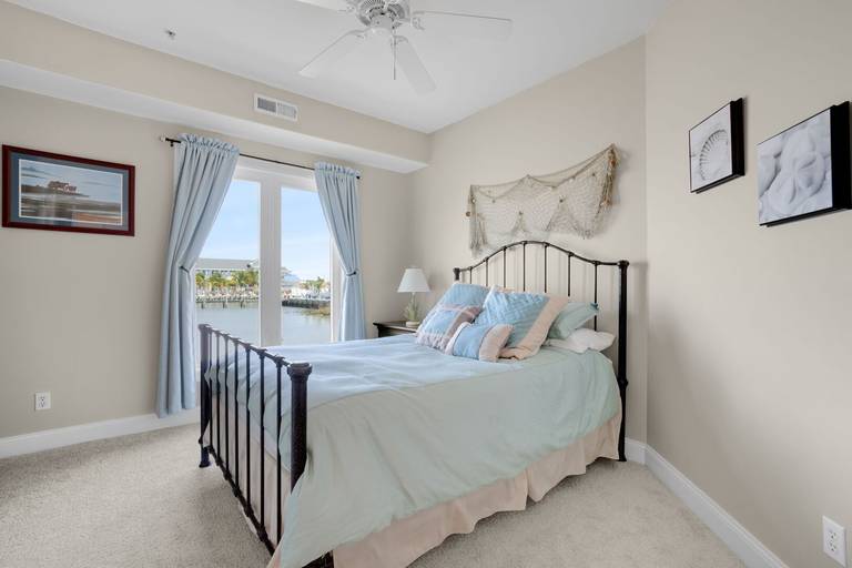Immerse yourself in luxury for days at this pristine waterfront villa! This condo unit provides the most spectacular views of the Chincoteague Bay, coupled with some unforgettable sunsets. Sunset Bay Villa 119 offers first floor living throughout with easy access to the condo amenities. Not to mention, convenient walk-out access to the marina boardwalk and boat dock. An open floor plan, including lots of windows that boast those beautiful bay views! Upon entering you will find two bedrooms- One is furnished with two twin bunks, as well as a TV. The 2nd bedroom features a queen size bed and also offers a spectacular waterfront view. There is a shared bathroom with a tub/shower combo in the hall, as well as a washer and dryer in the laundry room. As you make your way further into your beach abode, you will find a large open kitchen featuring granite countertops, BRAND NEW stainless steel appliances, and all the essential cookware to prepare delicious meals during your stay. The primary en-suite is situated so as to fully encompass the most captivating water views, while also offering a luxury bathroom with a tiled shower and jacuzzi tub. Enjoy a relaxing evening beverage while sitting on the balcony watching the sun set, or a nice cup of coffee in the morning. The balcony is accessible from both the primary bedroom suite and the open living area. Enjoy the convenience of close-by restaurants, shops, movie theater and much more with the proximity of Sunset Bay to the Downtown Chincoteague area. ** NEW FOR 2025: Brand new appliances, new flooring and other upgrades! You won't be disappointed! **