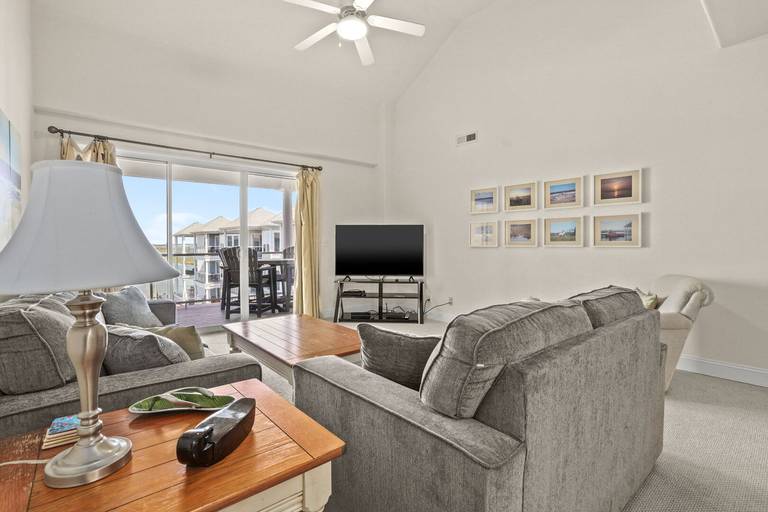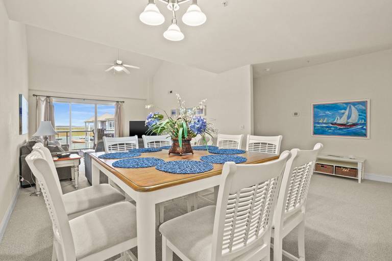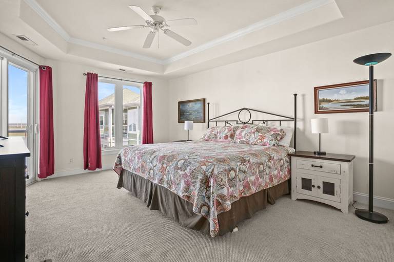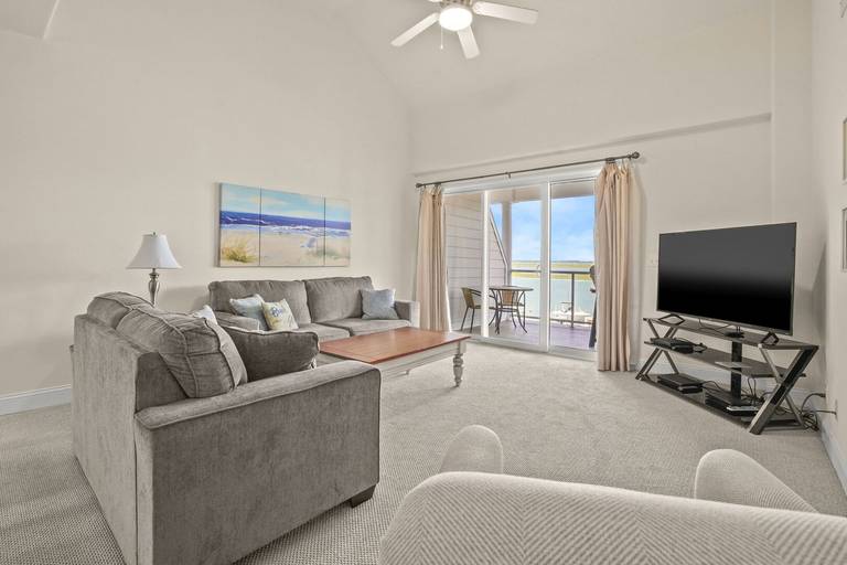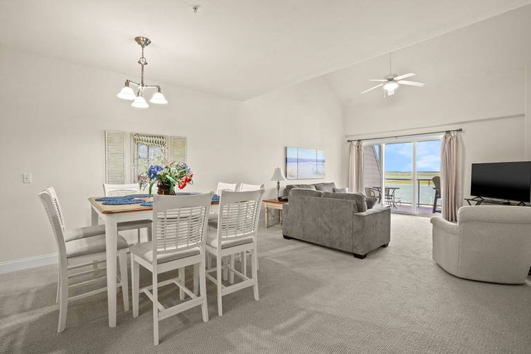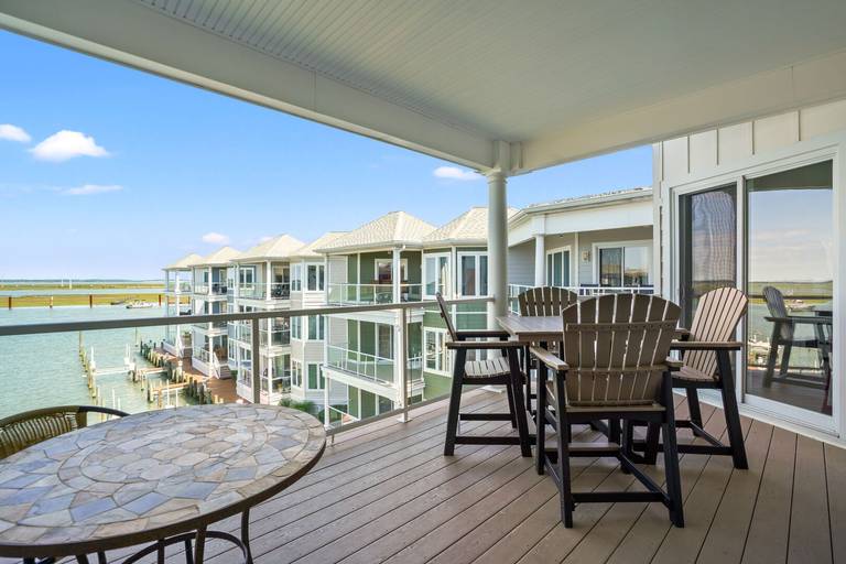Villa 312 is a beautiful 3 bedroom villa featuring a master bedroom suite with luxury bath, gourmet kitchen with center island which is great for entertaining, laundry room with washer/dryer and a waterside balcony overlooking Chincoteague Bay. There are TVs in all the bedrooms, and a computer desk to work from. Villa 312 will sleep 8, and features lots of extras including beach gear and baby gear for your use, as well as a 14' boat slip. Your rental also includes the use of the Sunset Bay pool and fitness area. Located adjacent to our historic downtown area, where you'll find gourmet food shops, boutiques, a public library, galleries and fine dining - all with a short stroll. Come and enjoy a Sunset Bay vacation! | Note: This villa has access to a 14' boat slip.