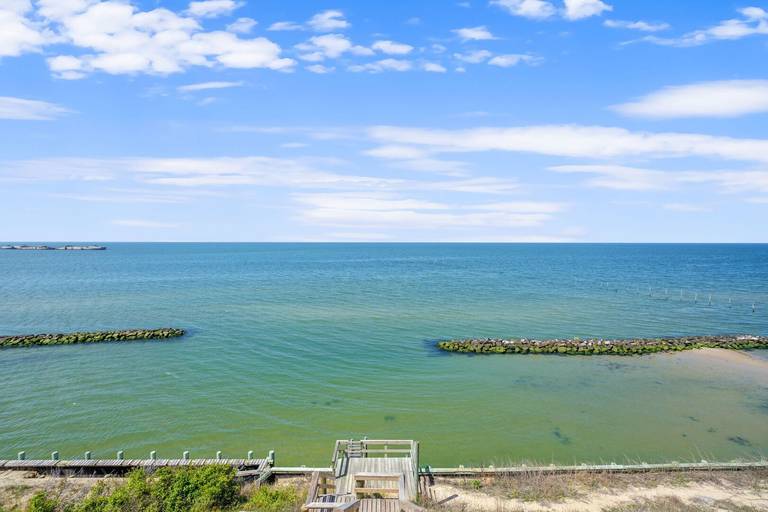 The heart of this home lies in its expansive windows that frame mesmerizing views of the Chesapeake Bay. The interiors are thoughtfully designed to maximize both comfort and elegance, featuring a dedicated game room and a serene lookout sitting area ideal for enjoying breathtaking sunsets or a quiet morning coffee.