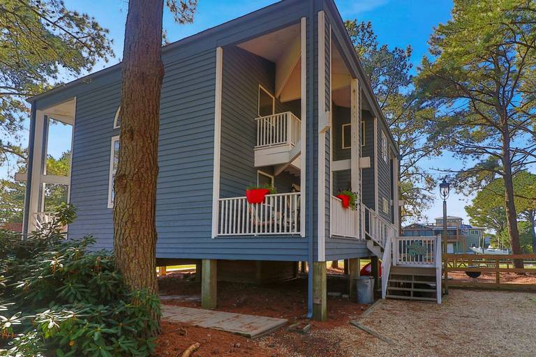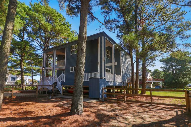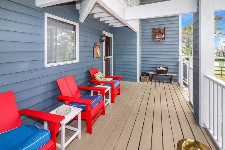 Beautiful 3 bedroom home located in one of Chincoteague Island's private WATERFRONT communities! Formerly known as "Snoozin' Goose", Sunshine Daydream offers multiple outdoor porches, an open floor plan with large, bright rooms and modern amenities -- all in a quiet, peaceful location. Enjoy wonderful water views while sitting directly on a canal leading out to Oyster Bay. Tastefully decorated, and you can bring your dog along also!