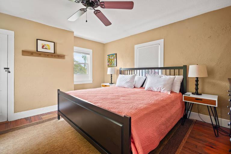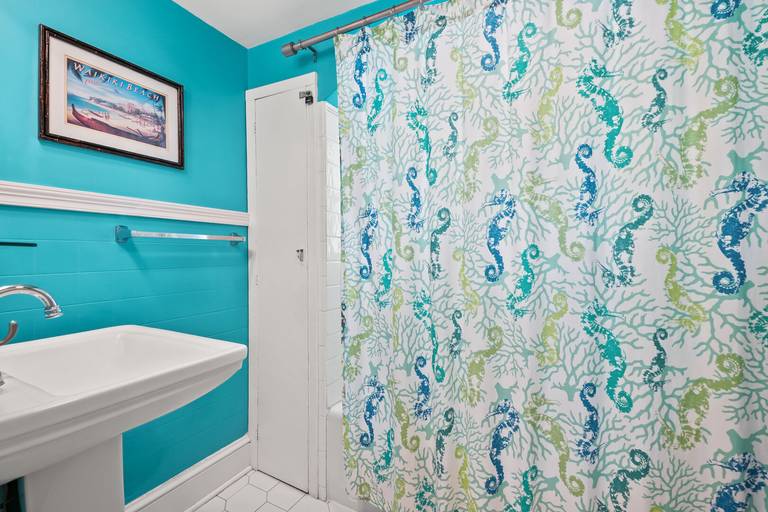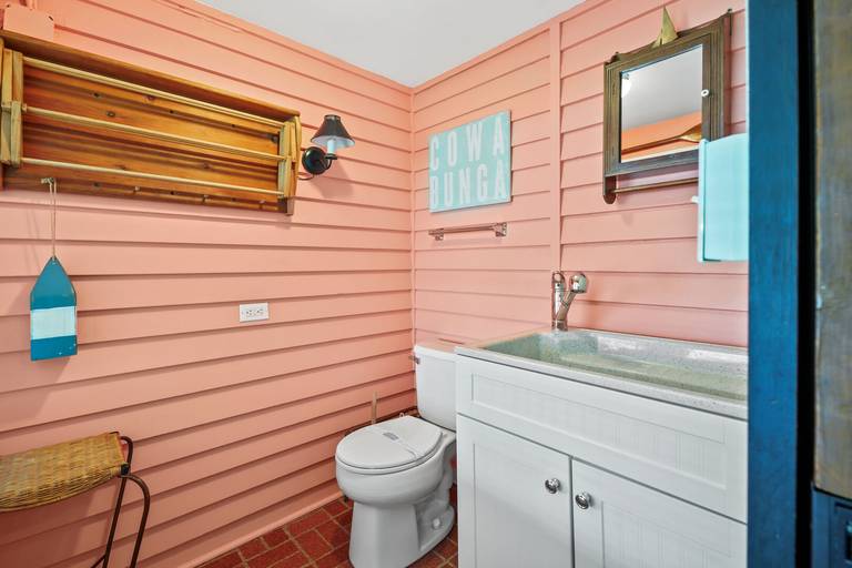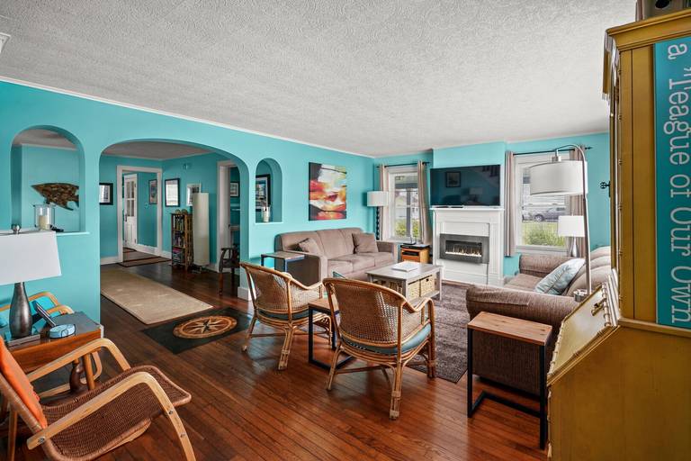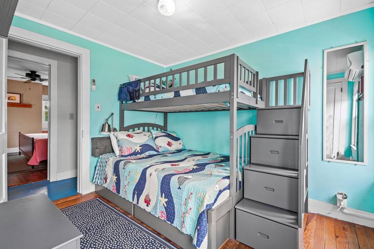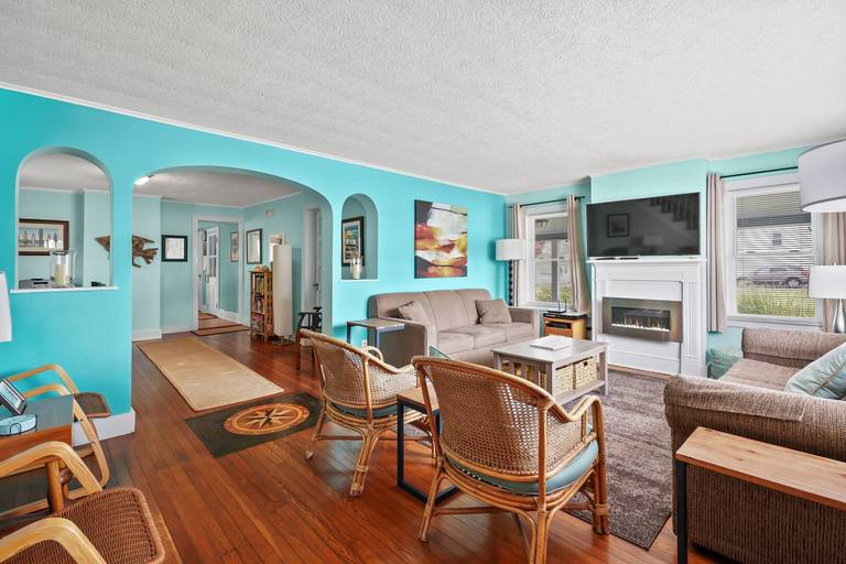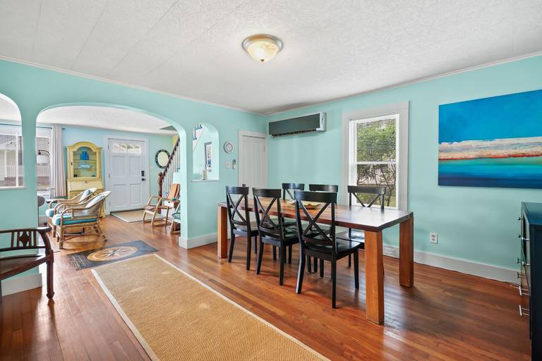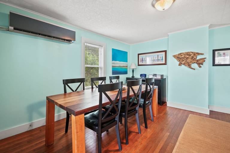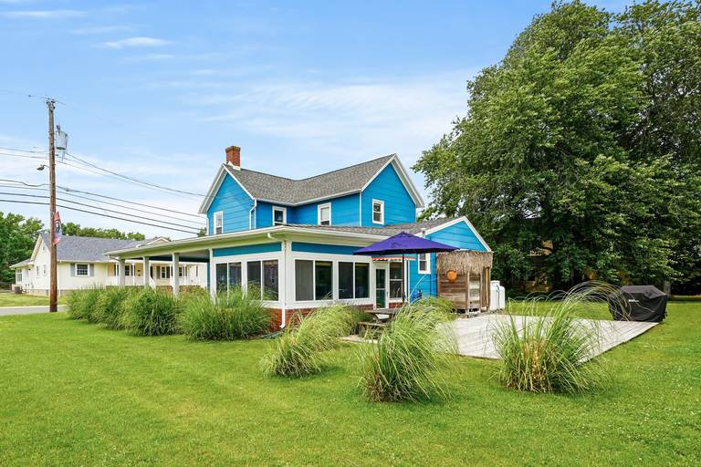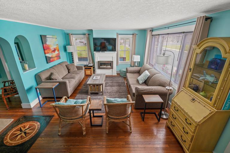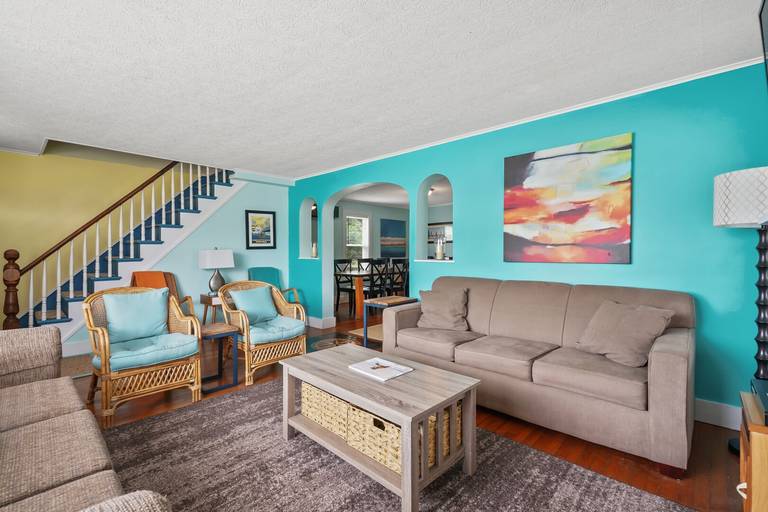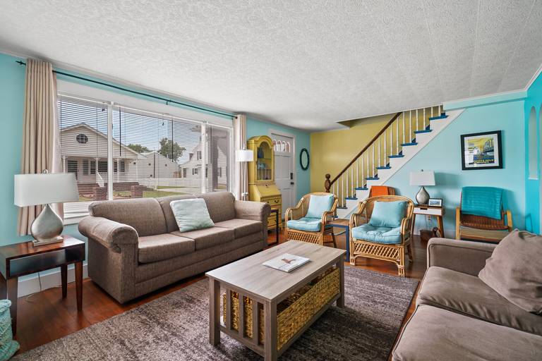 Welcome to A 'Teague of Our Own! This in-town home is an easy walk or bike to downtown or Maddox Blvd. Nicely decorated in 'beachy-chic' decor! The living room has abundant seating, complete with a flat screen TV and electric fireplace for those off-season stays. The kitchen is stocked to a chef's standards - there's nothing you won't find including a gas stove, sharp knifes and an herb garden. You will also find a queen sized sleeper sofa in the living room. The three bedrooms are upstairs, and the full bathroom (tub and shower) is downstairs. The enclosed porch with sliding windows allow for room to spread out in any weather. Large carport to keep a vehicle and all your gear under cover. A huge yard for cookouts, games and showering in the outdoor Tiki-shower. This fabulous vacation home truly has it all and has become one of our most popular rental homes. Don't delay; book today!