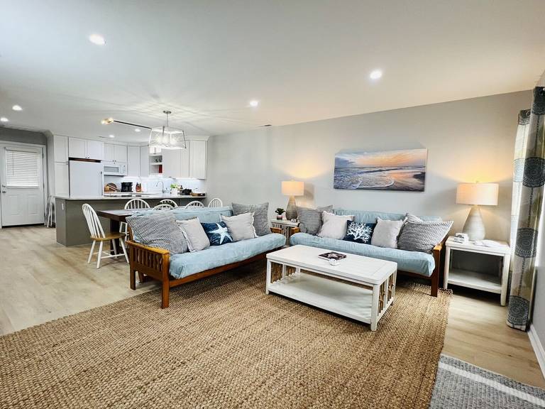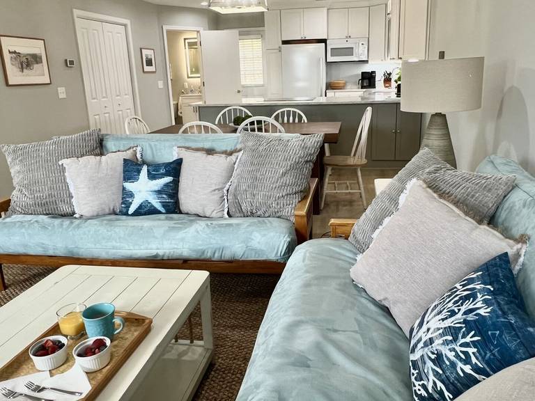 Welcome to your perfect coastal getaway in charming Chincoteague Island! This newly remodeled townhouse offers the ideal blend of comfort and modern amenities, featuring two cozy bedrooms and three full bathrooms as well as an open floor plan perfect for entertaining! Step into a space where everything sparkles with newness, from the stylish fixtures to the thoughtfully placed flat-screen TVs in every room. The innovative touches, such as bathrooms equipped with cutting-edge built-in Bluetooth speakers, make this home perfect for both relaxation and entertainment.